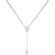 KJ Beckett Teardrop Adjustable Lariat Necklace - Silver/Clear