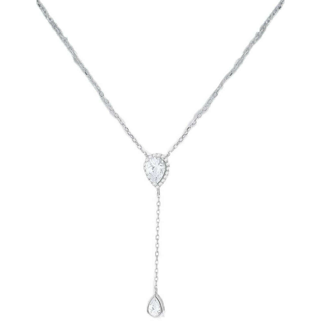 This teardrop adjustable lariat necklace for women is fashioned by the brand KJ Beckett in a clear colour and is made from sterling silver. All the necklaces come complete with packaging. The KJ Beckett Teardrop Adjustable Lariat Necklace - Silver/Clear is a delicate, eye-catching necklace featuring a graceful teardrop design adorned with sparkling white cubic zirconia. Finished with a sleek rhodium plating for added brilliance, this necklace is perfect for both everyday wear and special occasions adding a refined touch to any outfit.