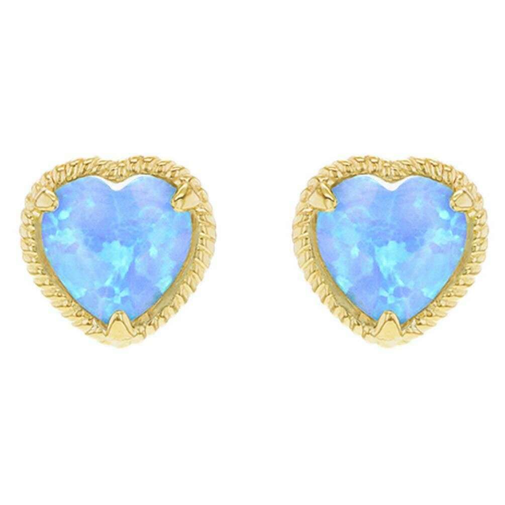 KJ Beckett Twisted Heart Opal Stud Earring - Yellow Gold/Blue