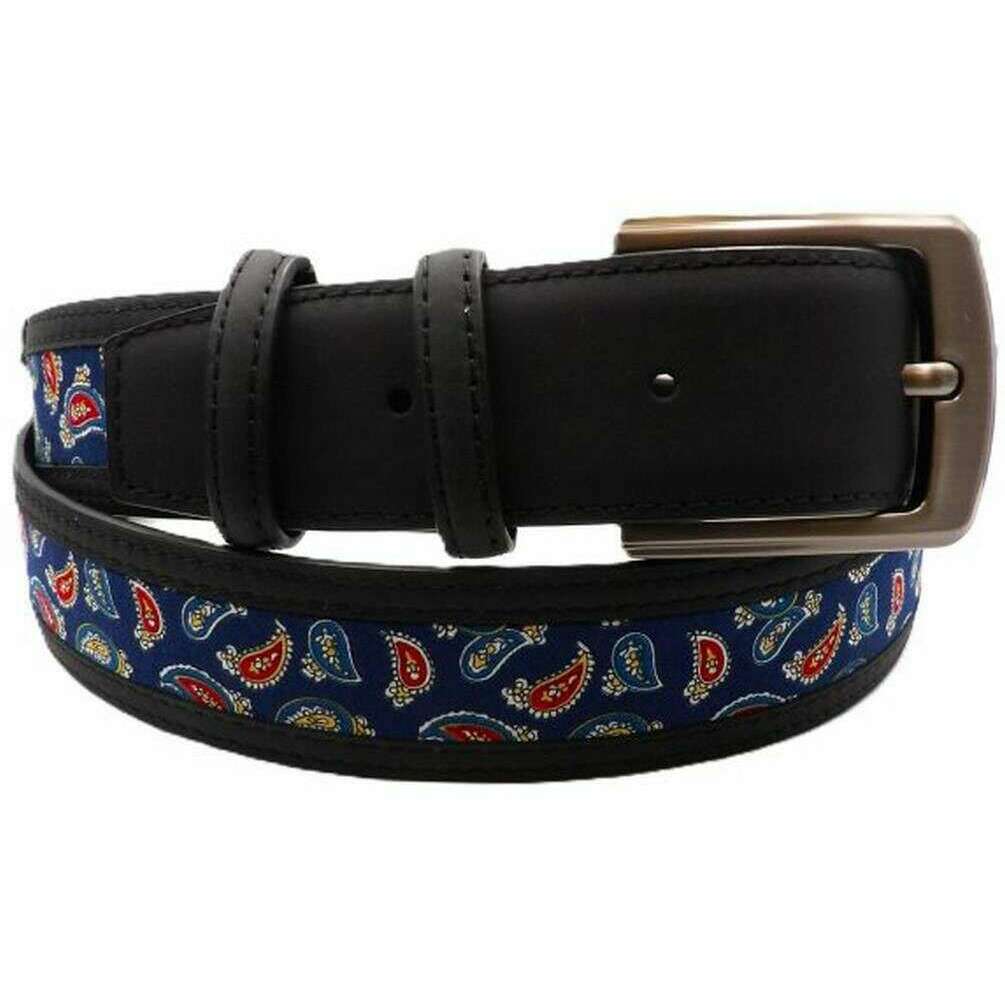 Knightsbridge Neckwear Mayfair Paisley Leather Belt - Black