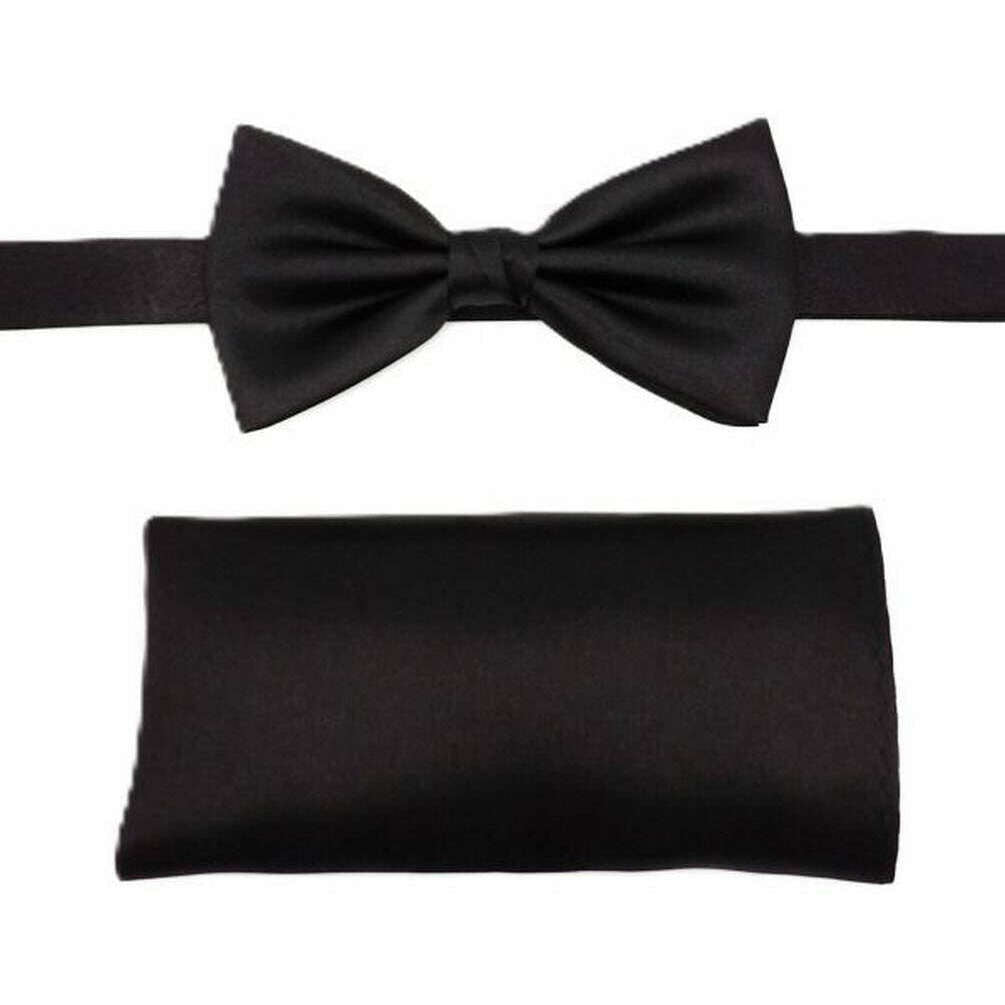 Knightsbridge Neckwear Satin Bow Tie and Pocket Square Set - Black