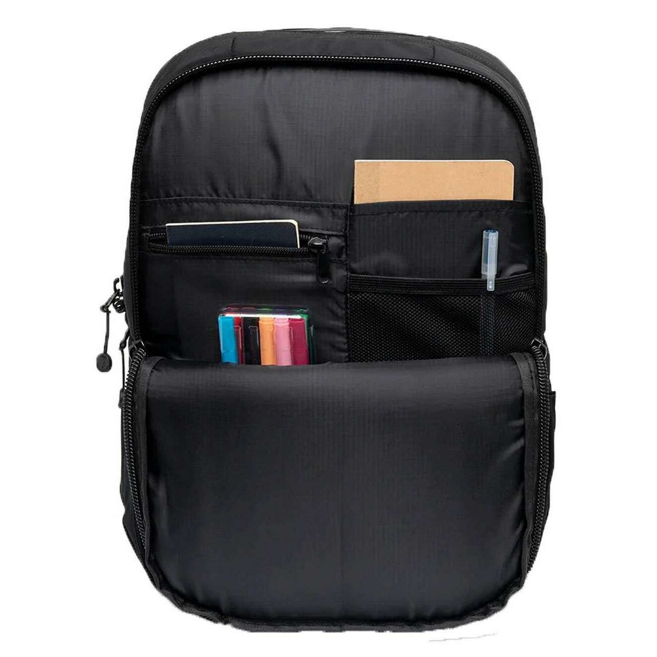 Designer Lefrik has brought you this unisex 100% ultra lightweight fabric bag using black tones. It measures 40cm(height) x 25cm(width) x 12cm(depth). All the bags come complete with lefrik packaging. The Lefrik 101 Backpack - Black is a sleek, sustainable, and practical choice for daily commuting and business travel. Crafted from recycled plastic bottles, this backpack features a main compartment with padded sleeve that holds up to 15.6" laptops, tablets and daily essentials. For efficient organization, this bag has two quick-access zipped pockets, one on the top and one on the front. With padded back and handles for comfort, this backpack can be attached to the handle of a trolley suitcase to keep it secure on your trips.