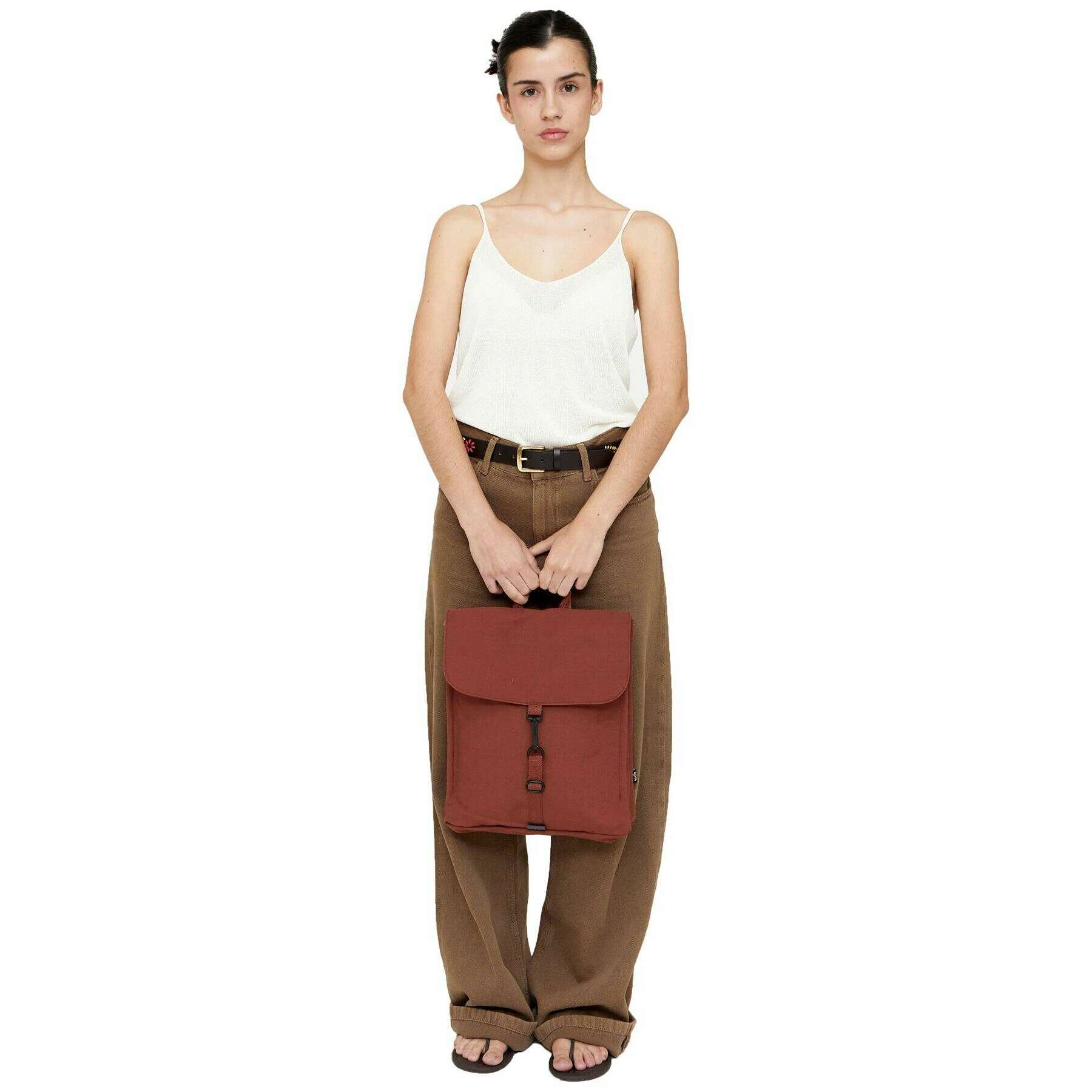 Manufactured from 100% vegan oxford rpet polyester is this bronze brown unisex arles handy mini backpack by the designer Lefrik. It measures 35cm(height) x 30cm(width) x 9cm(depth). It is recommended to cold wash and air dry to keep this bag in good condition. All the bags come complete with lefrik packaging. The Lefrik Arles Handy Mini Backpack - Bronze Brown offers a stylish and sustainable solution for individuals seeking eco-friendly and comfortable backpacks. Featuring a main compartment that holds up to a 13.6-inch laptop, this functional also features an interior bottle pocket and a security pocket on the back for your convenience. With padded, adjustable shoulder straps this Handy Mini model makes a perfect everyday backpack. Crafted from RPET materials making this bag vegan and sustainable.