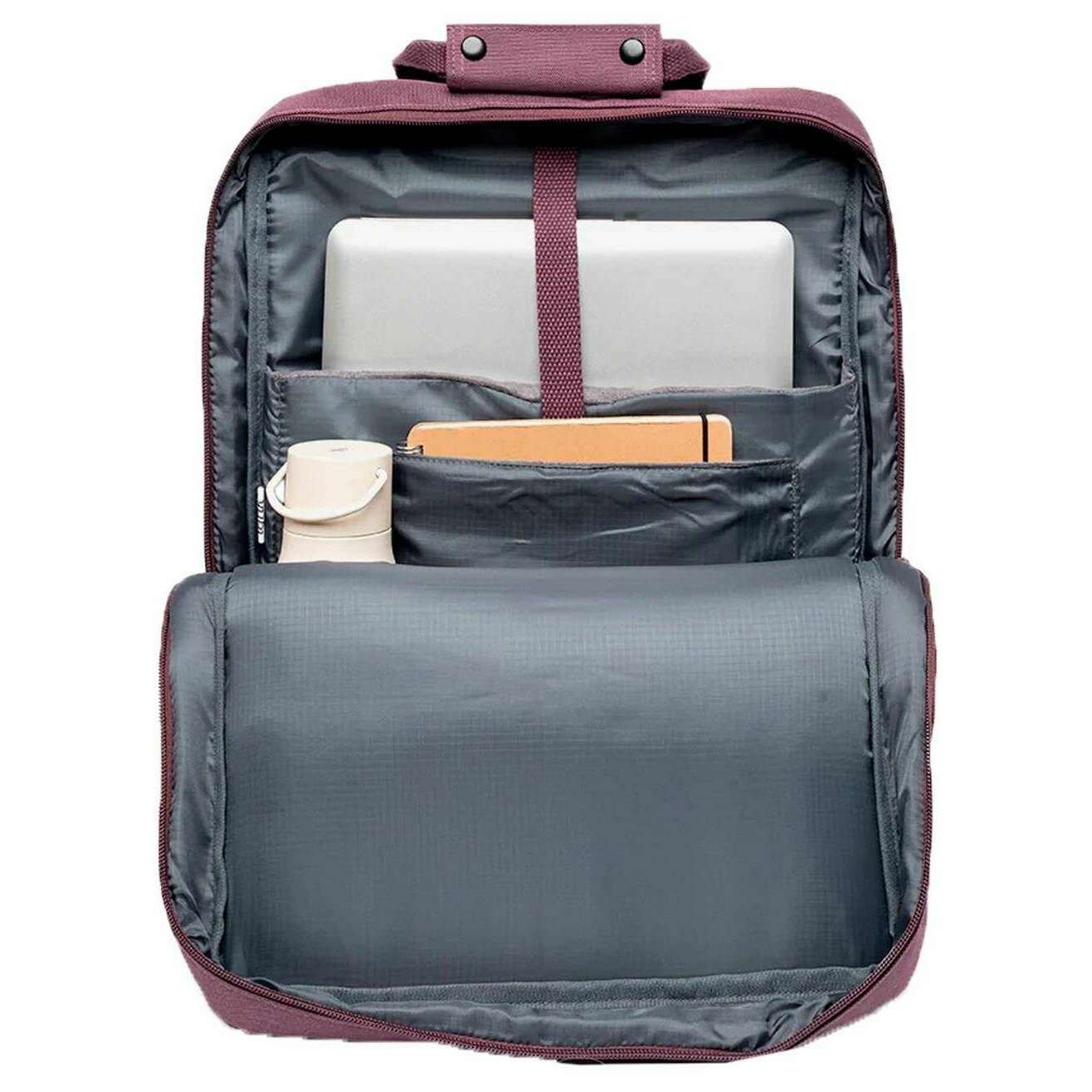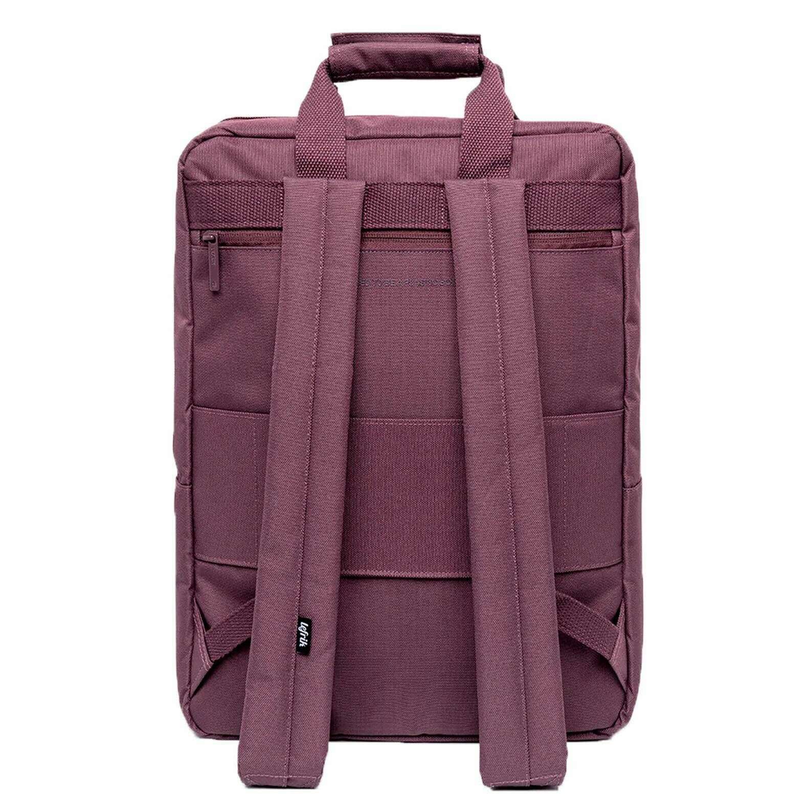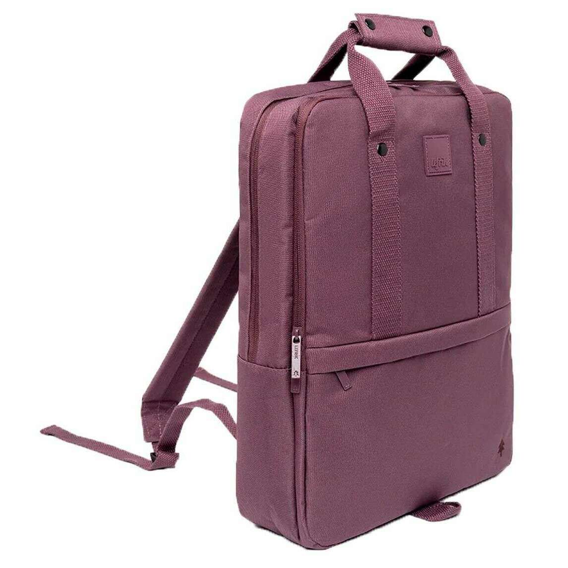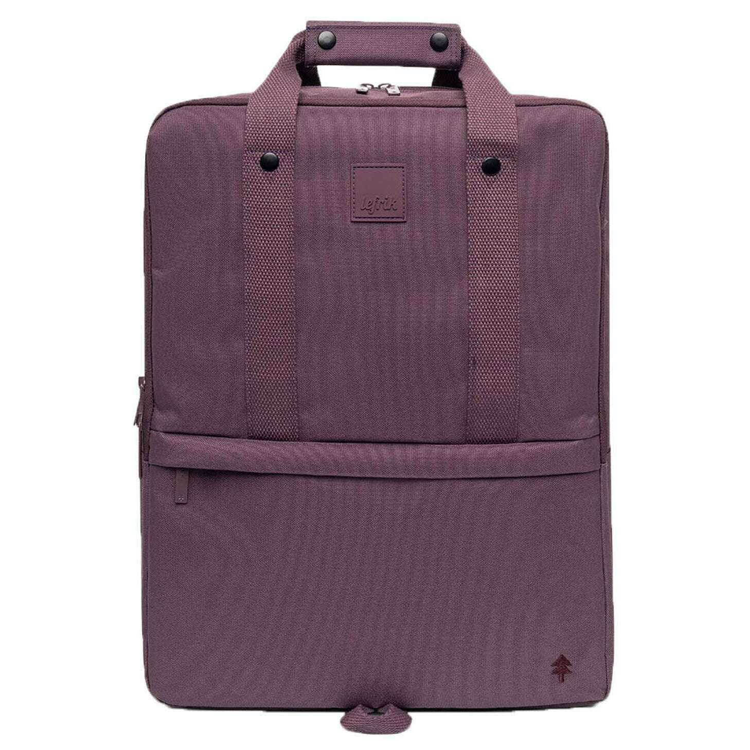 Manufactured from 100% vegan oxford rpet fabric is this maroon purple unisex daily 15" backpack by the designer Lefrik. It measures 40cm(height) x 30cm(width) x 9cm(depth). All the bags come complete with lefrik packaging. The Lefrik Daily 15" Backpack - Maroon Purple is designed to meet the needs of daily commuters, students, and travellers alike. With its spacious two compartment interior, this backpack can accommodate a 15.6-inch laptop along with other daily essentials. A slim front pocket and back security pocket offer extra storage. Equipped with padded and adjustable handles, the backpack features a back band that can be attached to the handle of trolley suitcases, making it an ideal choice for individuals seeking a reliable and stylish backpack for everyday use.
