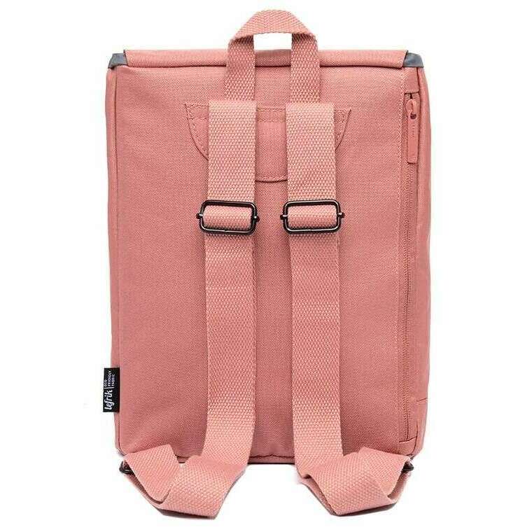 This kaut mini backpack for men or women is fashioned by the brand Lefrik in a pink colour and is made from 100% vegan oxford rpet fabric. It measures 30cm(height) x 22cm(width) x 13cm(depth). All the bags come complete with lefrik packaging. The Lefrik Kaut Mini Backpack - Dust Pink is the mini version of the iconic Kaut model, featuring a large main compartment and a separate pocket for notebooks or small electronic devices. Perfect for school, work or play, this backpack is lightweight and water resistant. The quick access pocket on the flap and security pocket on the back allow you to store small items comfortably. With just the right amount of space, this vegan and sustainable backpack is designed for convenience.