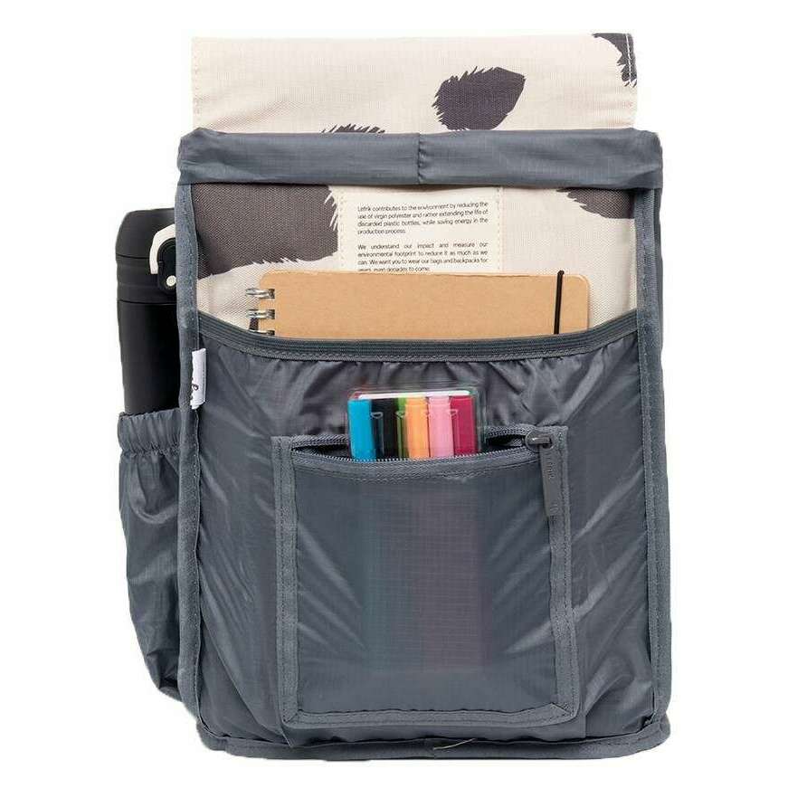 Perfect for men or women is this Lefrik cream/grey kaut mini printed cow backpack, it is also made from 100% recycled oxford rpet fabric. It measures 30cm(height) x 22cm(width) x 13cm(depth). All the bags come complete with lefrik packaging. The Lefrik Kaut Mini Printed Cow Backpack - Cream/Grey is extremely practical and comfortable. This mini version of the iconic Kaut model features a large main compartment and a separate pocket for notebooks or small electronic devices. Perfect for school, work or play, this backpack is lightweight and water resistant. The quick access pocket on the flap and security pocket on the back allow you to store small items comfortably. With just the right amount of space, this vegan and sustainable backpack is designed for convenience.