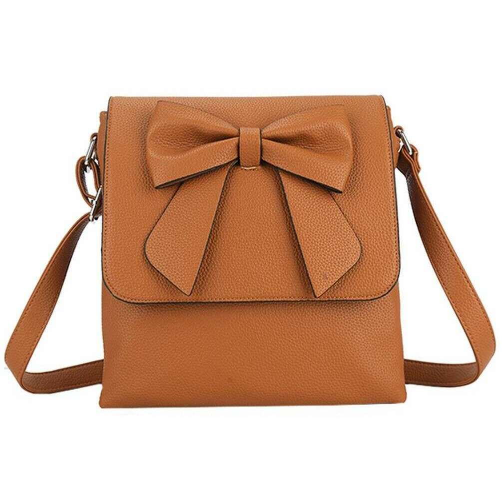 This adjustable bow crossbody bag for women is fashioned by the brand Long and Son in a brown colour and is made from 100% polyurethane. It measures 26cm(height) x 25cm(width) x 2cm(depth). All the bags come complete with long & son packaging. The Long and Son Adjustable Bow Crossbody Bag - Brown cute and girly is a practical and gorgeous bag that will make a great addition to your collection. Featuring double compartments for optimal storage and added interior pockets and one exterior pocket for organisation. The double zipper and flap over magnetic closure ensures optimal security for your belongings. The strap can be adjusted for versatility matching any look. Complete with a big front bow gives a statement touch.