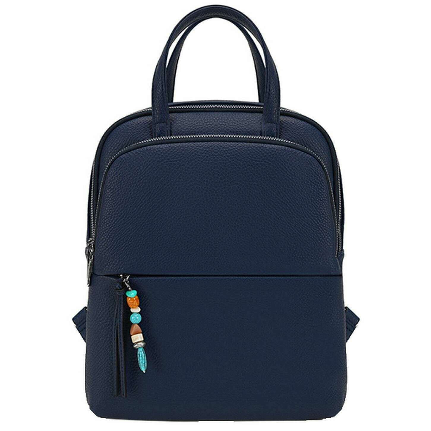 Manufactured from 100% polyurethane is this navy women's backpack by the designer Long and Son. It measures 34cm(height) x 29cm(width) x 10cm(depth). All the bags come complete with long & son packaging. The Long and Son Backpack - Navy is a classic with a chic and girly twist featuring a sleek design with an added charm on the zip. Having adjustable back straps allows for a personalised fit for hands free ease and two carry handles for convenience. The exterior pockets, interior pockets and large main compartment allow for optimal storage and organisation when out and about. Great for travels, taking to work or having as an everyday bag this will become a well-used accessory.