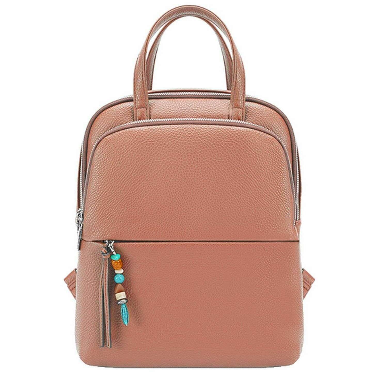 Perfect for women is this Long and Son pink backpack, it is also made from 100% polyurethane. It measures 34cm(height) x 29cm(width) x 10cm(depth). All the bags come complete with long & son packaging. The Long and Son Backpack - Pink is a classic with a chic and girly twist featuring a sleek design with an added charm on the zip. Having adjustable back straps allows for a personalised fit for hands free ease and two carry handles for convenience. The exterior pockets, interior pockets and large main compartment allow for optimal storage and organisation when out and about. Great for travels, taking to work or having as an everyday bag this will become a well-used accessory.