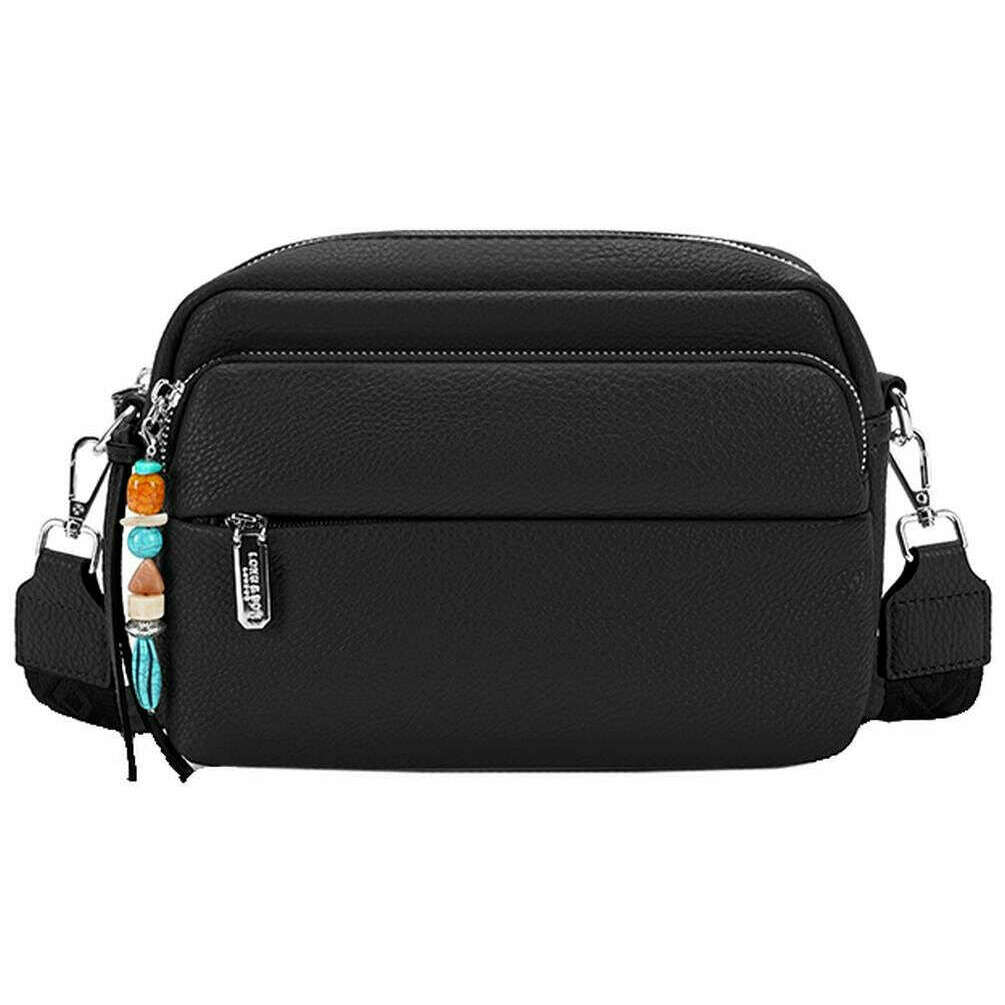 This well made women's camera crossbody bag from Long and Son comes in a black colour and is manufactured from 100% polyurethane. It measures 17cm(height) x 24cm(width) x 9cm(depth). All the bags come complete with long & son packaging. The Long and Son Camera Crossbody Bag - Black is a perfect everyday bag that is practical and cute. Featuring multiple exterior pockets for convenience and storage, a great interior size for all your essentials and more interior pockets for added organisation. The wide detailed adjustable detachable crossbody strap allows for a hands-free wear great for any occasion. Complete with branded zips and a charm.