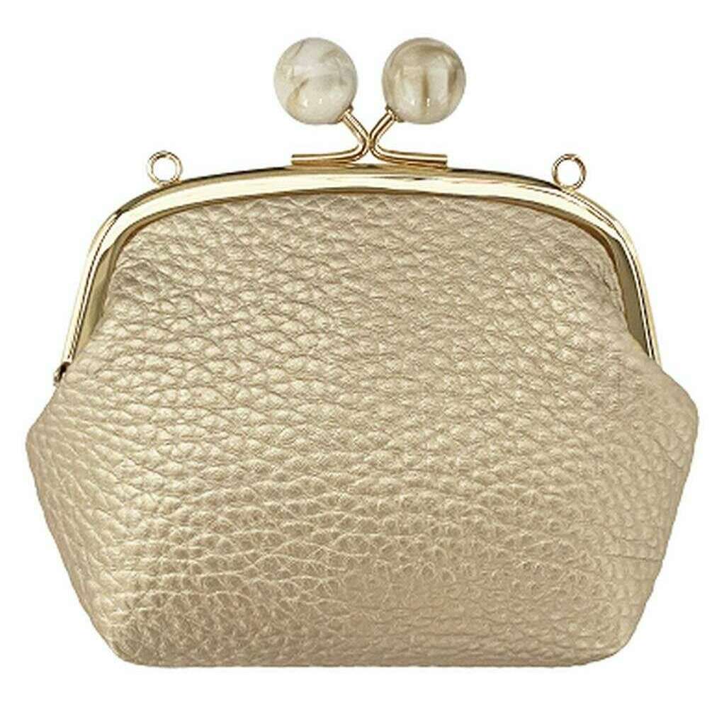 This well made women's clasp purse bag from Long and Son comes in a gold colour and is manufactured from 100% polyurethane. It measures 12cm(height) x 16cm(width) x 4.5cm(depth). All the bags come complete with long & son packaging. The Long and Son Clasp Purse Bag - Gold is the cutest little purse that doubles as a clutch or a crossbody or sling bag. The clasp closure offers ease when accessing your belongings or slipping something in. Perfect for dressy occasions to hold in your hand or wear with the gold chain strap. The small compact style is perfect for when you are carrying light great for your keys, lipstick and lip-gloss and little must-haves.