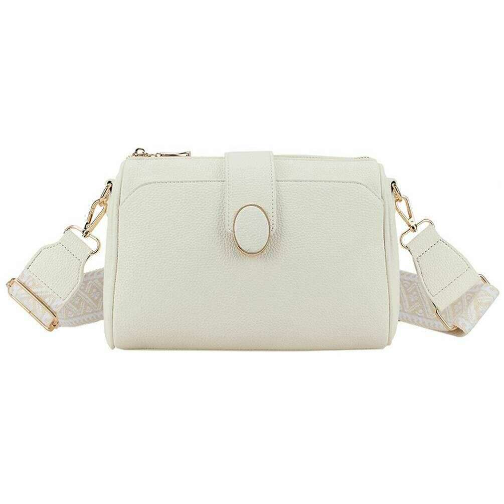 Designer Long and Son has brought you this women's 100% polyurethane bag using off white tones. It measures 17cm(height) x 25cm(width) x 11cm(depth). All the bags come complete with long & son packaging. The Long and Son Double Closure Crossbody Bag - Off White trendy and girly is a must-have to add to your collection with the gorgeous and practical features. The detachable thick detailed body strap can be adjusted to your liking depending on the outfit and the look you are going for perfect for all occasions. The large main compartment and interior pockets are great for optimal storage and organisation to hold everything and more that you need. The double closure, magnetic and zipper, ensures great security for your belongings.
