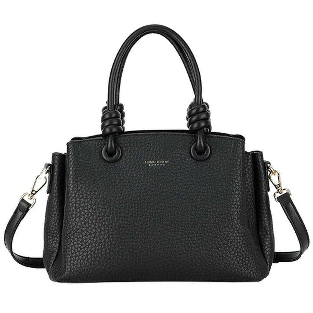 Designer Long and Son has brought you this women's 100% polyurethane bag using black tones. It measures 20cm(height) x 28cm(width) x 13cm(depth). All the bags come complete with long & son packaging. The Long and Son Knot Crossbody Bag - Black features a large interior with an open and zipper pocket, extra compartments either side of the zipper held together with magnetic closures for extra storage and feet studs for protection when placing down. This bag doubles up as cross body and a handbag with the two carry handles and detachable adjustable crossbody strap. Great for an everyday bag due to the versatility and optimal storage.