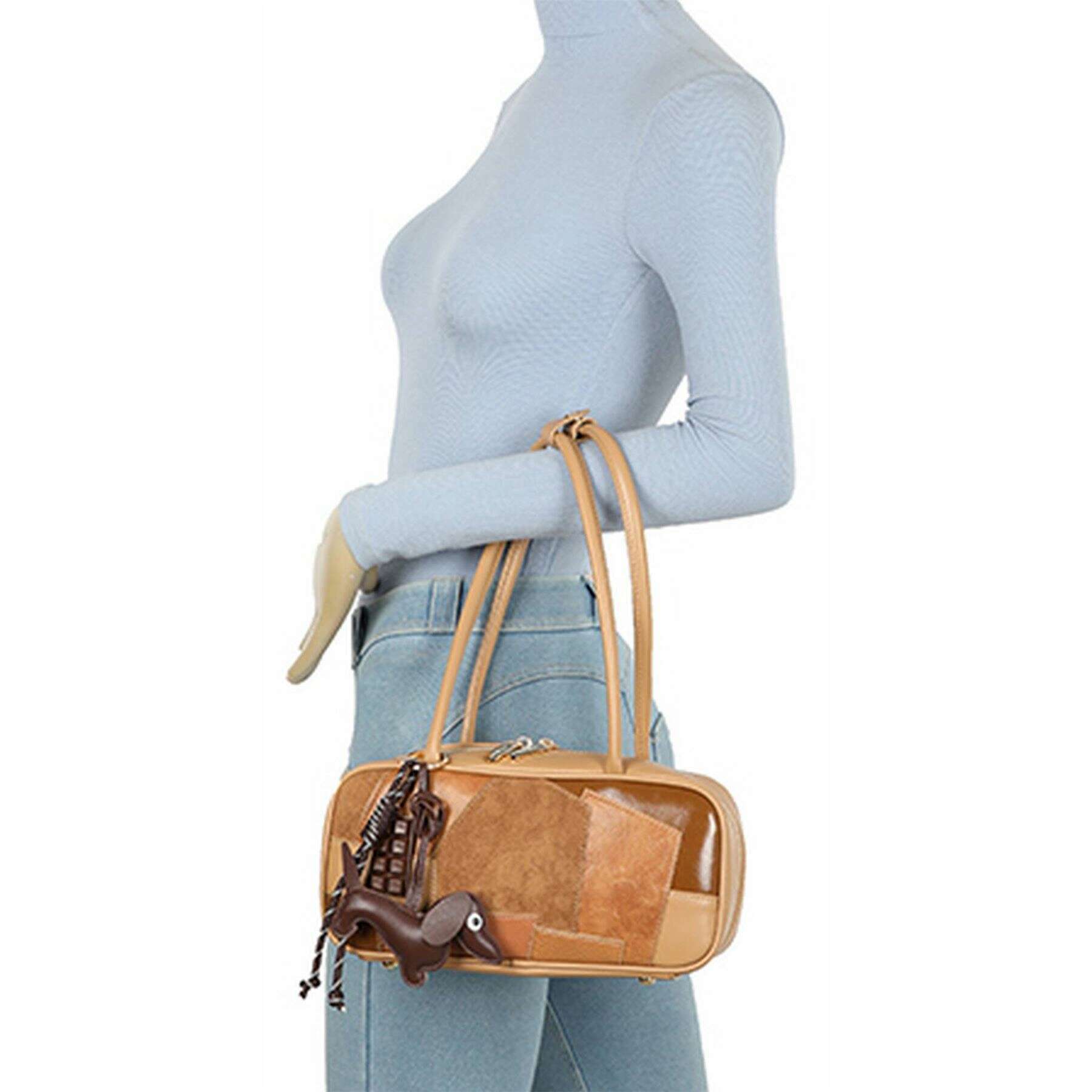 This well made women's patchwork shoulder bag from Long and Son comes in a khaki beige colour and is manufactured from 100% polyurethane. It measures 13cm(height) x 28cm(width) x 8.5cm(depth). All the bags come complete with long & son packaging. The Long and Son Patchwork Shoulder Bag - Khaki Beige chic and cute is a lovely bag for a modern touch. Featuring long shoulder straps for a hands-free wear and comfort, a double zipper closure for security and convenience, a perfect sized interior and cute charms for a completed touch. The patchwork design adds a contemporary flair that will dress up any attire.