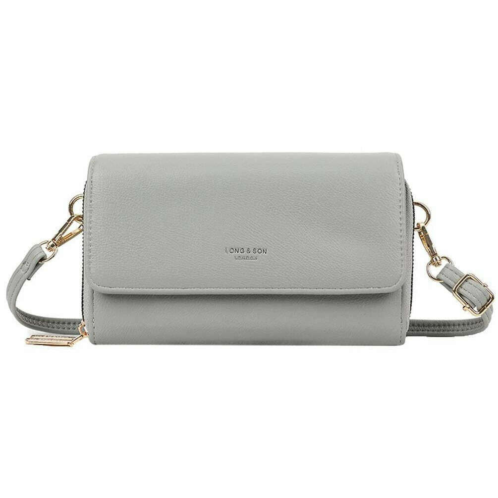 Designer Long and Son has brought you this women's 100% polyurethane bag using light grey tones. It measures 12.5cm(height) x 20cm(width) x 5cm(depth). All the bags come complete with long & son packaging. The Long and Son Purse Crossbody Bag - Light Grey is a must-have if you carry lightly. Featuring multiple sections for your smaller belongings, six card holders and a notes compartment for the convenience of not having to pack a purse. The small and compact style is great for a lightweight wear, and the detachable adjustable strap allows a crossbody or shoulder wear whilst also doubling up as a clutch. Complete with subtle Long & Son branding.
