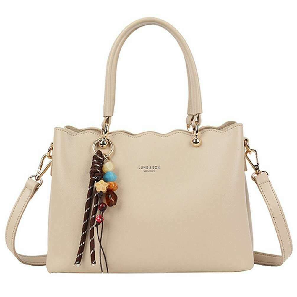 Introducing this women's scalloped edge crossbody bag by Long and Son, it is manufactured from 100% polyurethane in a apricot beige colour. It measures 18cm(height) x 24.5cm(width) x 11cm(depth). All the bags come complete with long & son packaging. The Long and Son Scalloped Edge Crossbody Bag - Apricot Beige features a large interior with pockets, extra compartments either side of the zipper held together with magnetic closures for extra storage and feet studs for protection when placing down. This bag doubles up as cross body and a handbag with the two carry handles and detachable adjustable crossbody strap. Great for an everyday bag due to the versatility and optimal storage. Complete with the scalloped detailing for a girly touch.