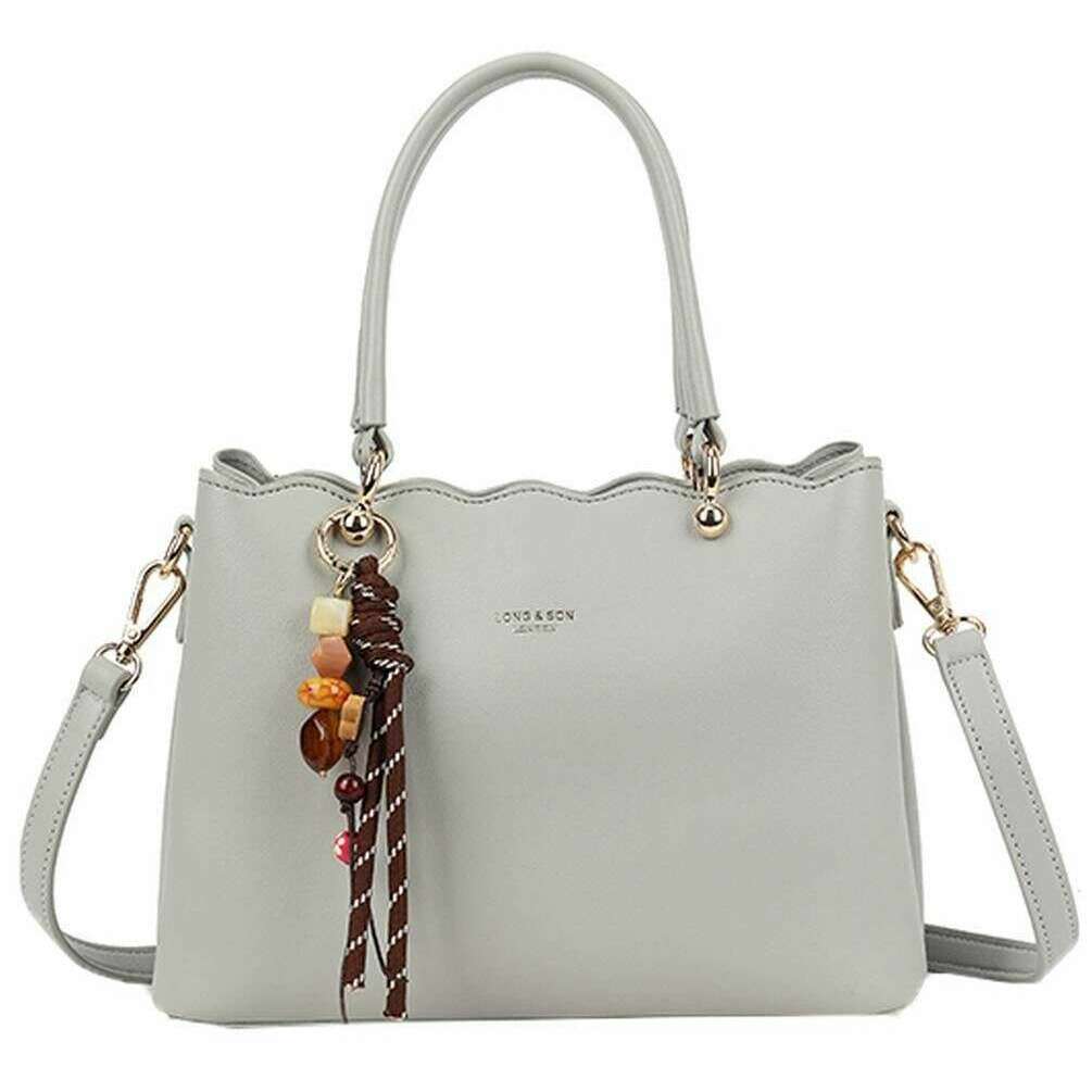 Designer Long and Son has brought you this women's 100% polyurethane bag using light grey tones. It measures 18cm(height) x 24.5cm(width) x 11cm(depth). All the bags come complete with long & son packaging. The Long and Son Scalloped Edge Crossbody Bag - Light Grey features a large interior with pockets, extra compartments either side of the zipper held together with magnetic closures for extra storage and feet studs for protection when placing down. This bag doubles up as cross body and a handbag with the two carry handles and detachable adjustable crossbody strap. Great for an everyday bag due to the versatility and optimal storage. Complete with the scalloped detailing for a girly touch.