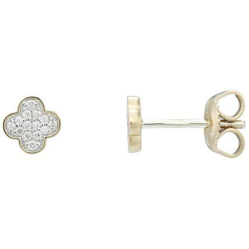 Perfect for women are these Mark Milton yellow gold/clear diamond clover earrings, they are also made from 9ct gold. It measures 0.5cm(height) x 0.5cm(width) x 0.1cm(depth). All the earrings come complete with mark milton packaging. The Mark Milton Diamond Clover Earrings - Yellow Gold/Clear are a beautiful pair of gold earrings that feature a diamond clover design. This pair of classy earrings are great for gifting to those you love, or a perfect staple to have in your wardrobe.