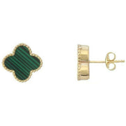Mark Milton Malachite Flower Earrings - Yellow Gold/Green