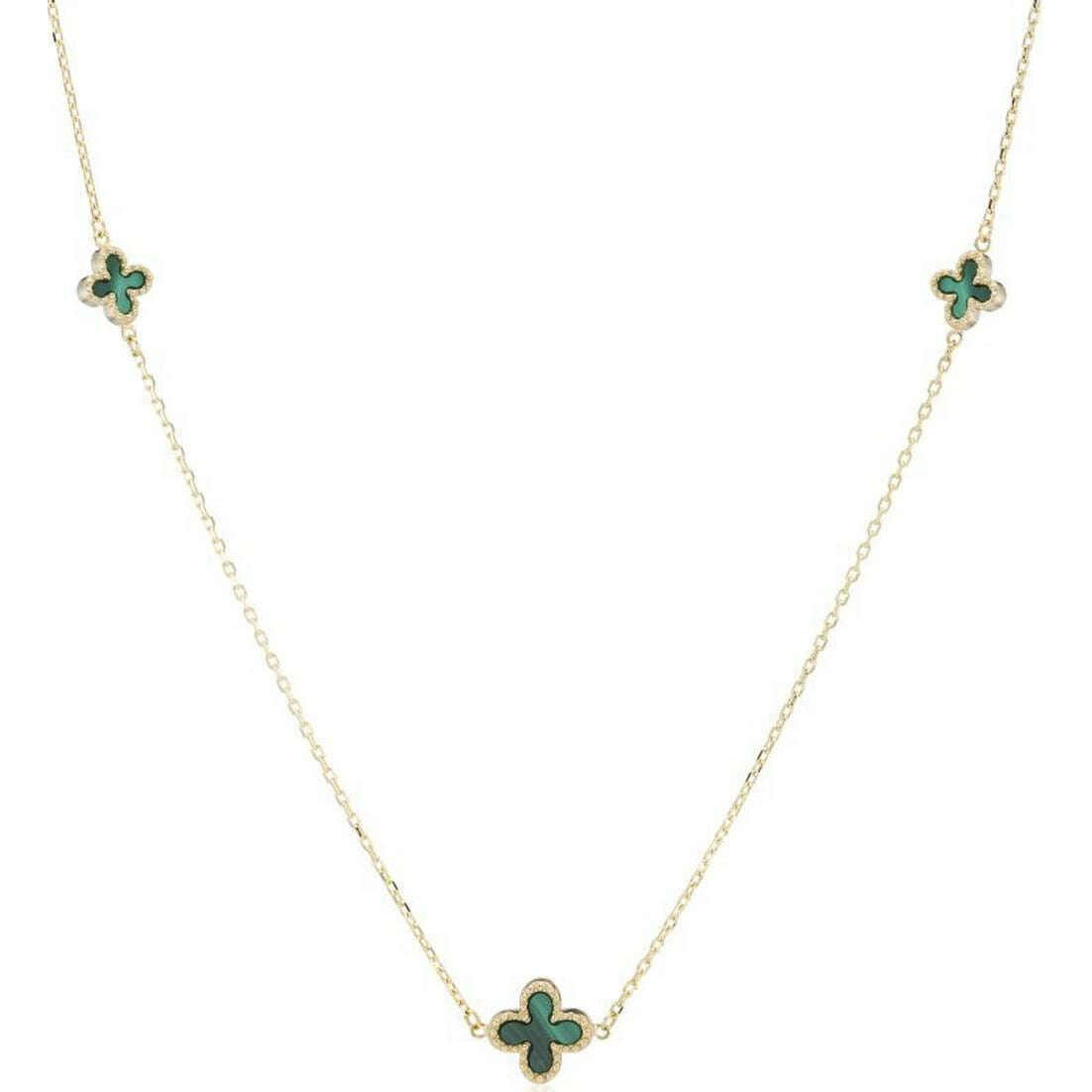 Introducing this women's malachite flower necklace by Mark Milton, it is manufactured from 9ct gold in a yellow gold/green colour. It measures 46cm(length). All the necklaces come complete with mark milton packaging. The Mark Milton Malachite Flower Necklace - Yellow Gold/Green features three malachite stone flowers on a gold chain, this necklace is stunning and has an eye-catching design, perfect for day-to-day wearing or adding a little unique flare to your evening attire.