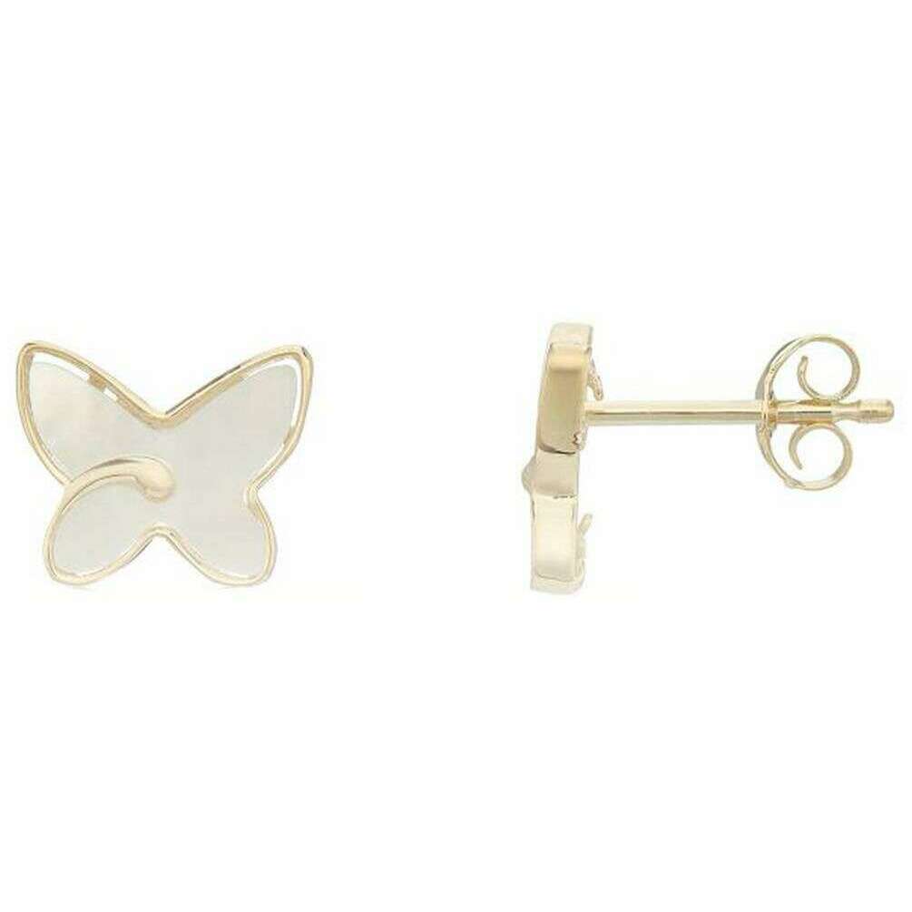 Mark Milton Mother of Pearl Butterfly Stud Earrings - Yellow Gold/White
