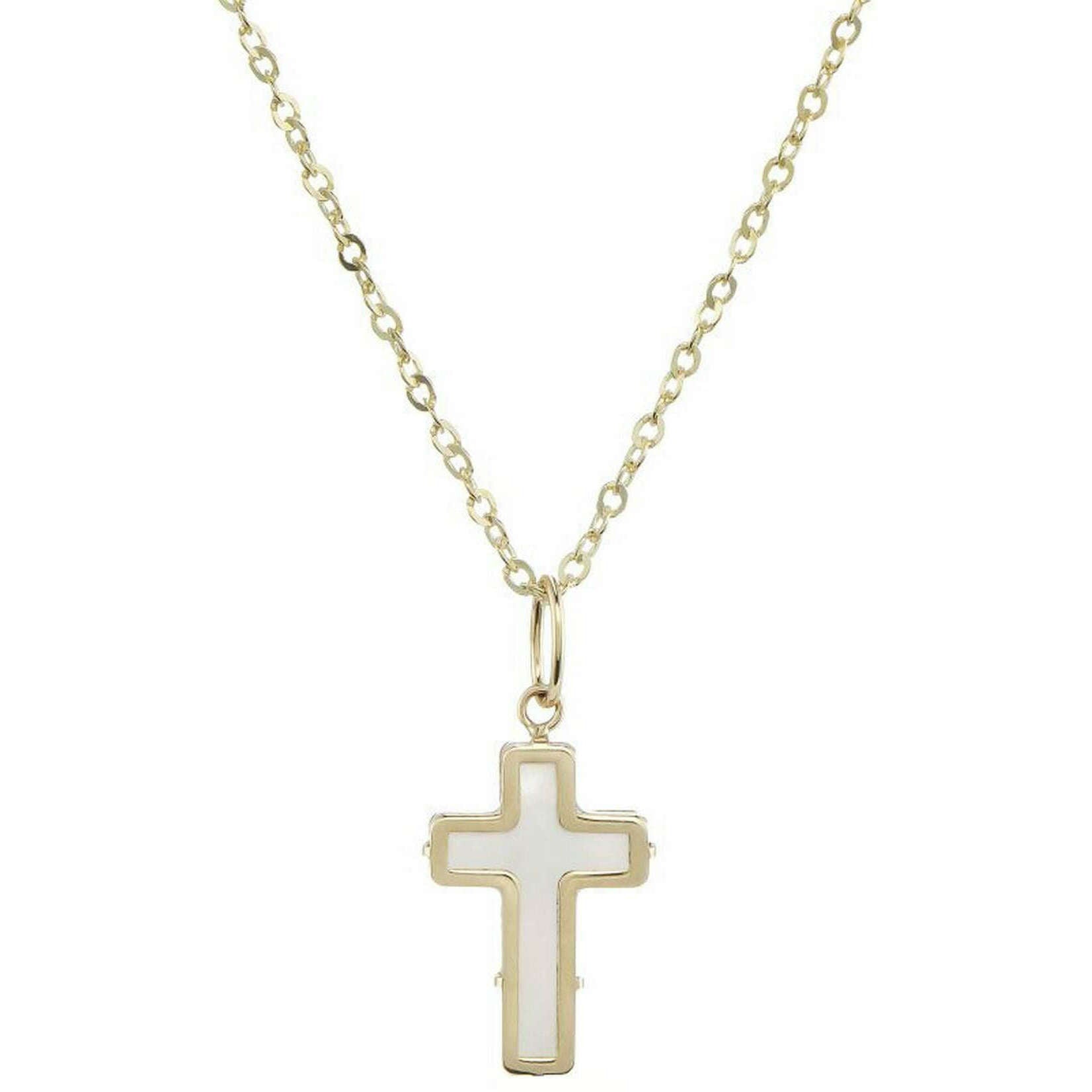Mark Milton Mother of Pearl Cross Pendant - Yellow Gold/White