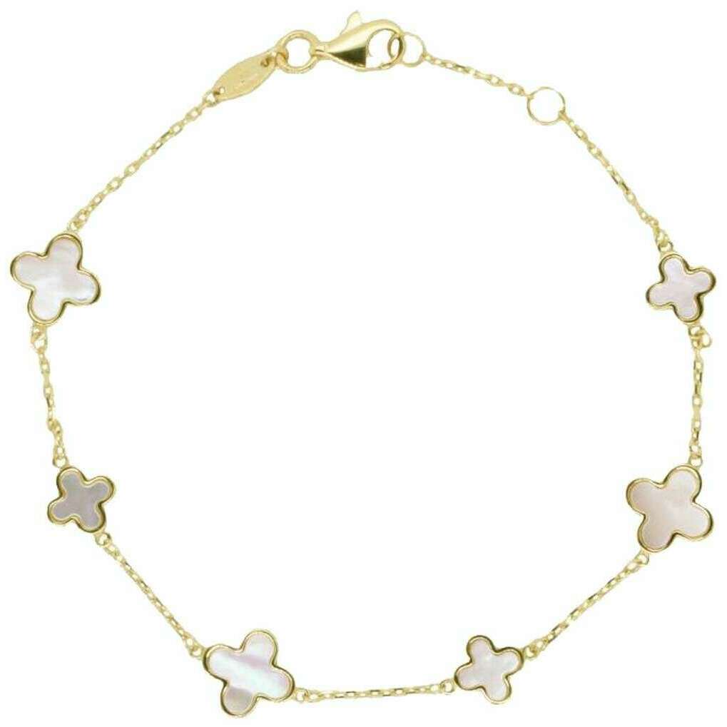 Mark Milton Mother of Pearl Flower Bracelet - Yellow Gold/White