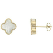 Mark Milton Mother of Pearl Flower Earrings - Yellow Gold/White