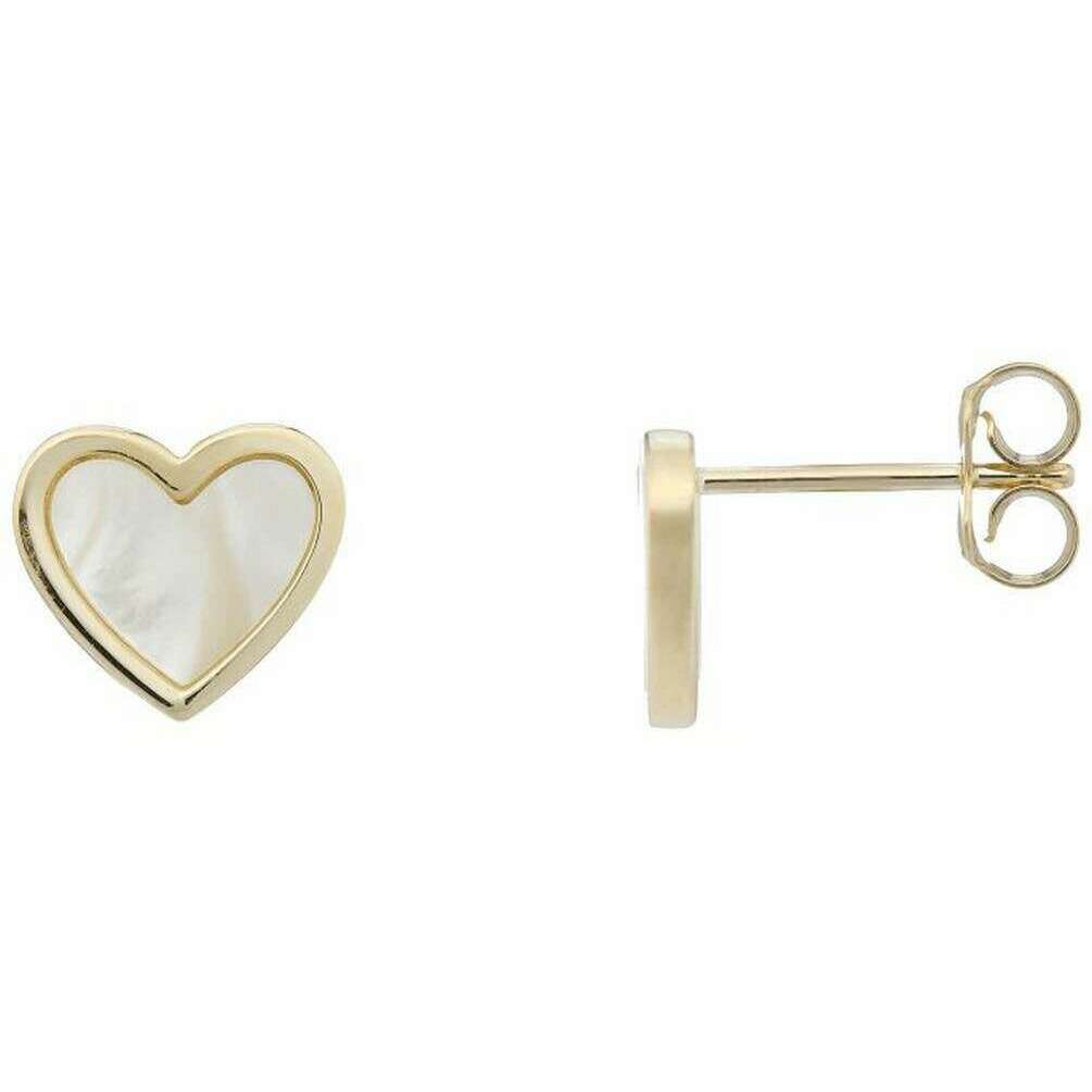 Using gold 9ct gold, these mother of pearl heart earrings by Mark Milton are perfect for women and a must have. It measures 0.9cm(height) x 1cm(width) x 0.2cm(depth). All the earrings come complete with mark milton packaging. The Mark Milton Mother of Pearl Heart Earrings - Yellow Gold/White are a beautiful pair of gold earrings that feature a mother of pearl stone heart design. This pair of elegant earrings are great for gifting to those you love, or a perfect staple to have in your wardrobe.