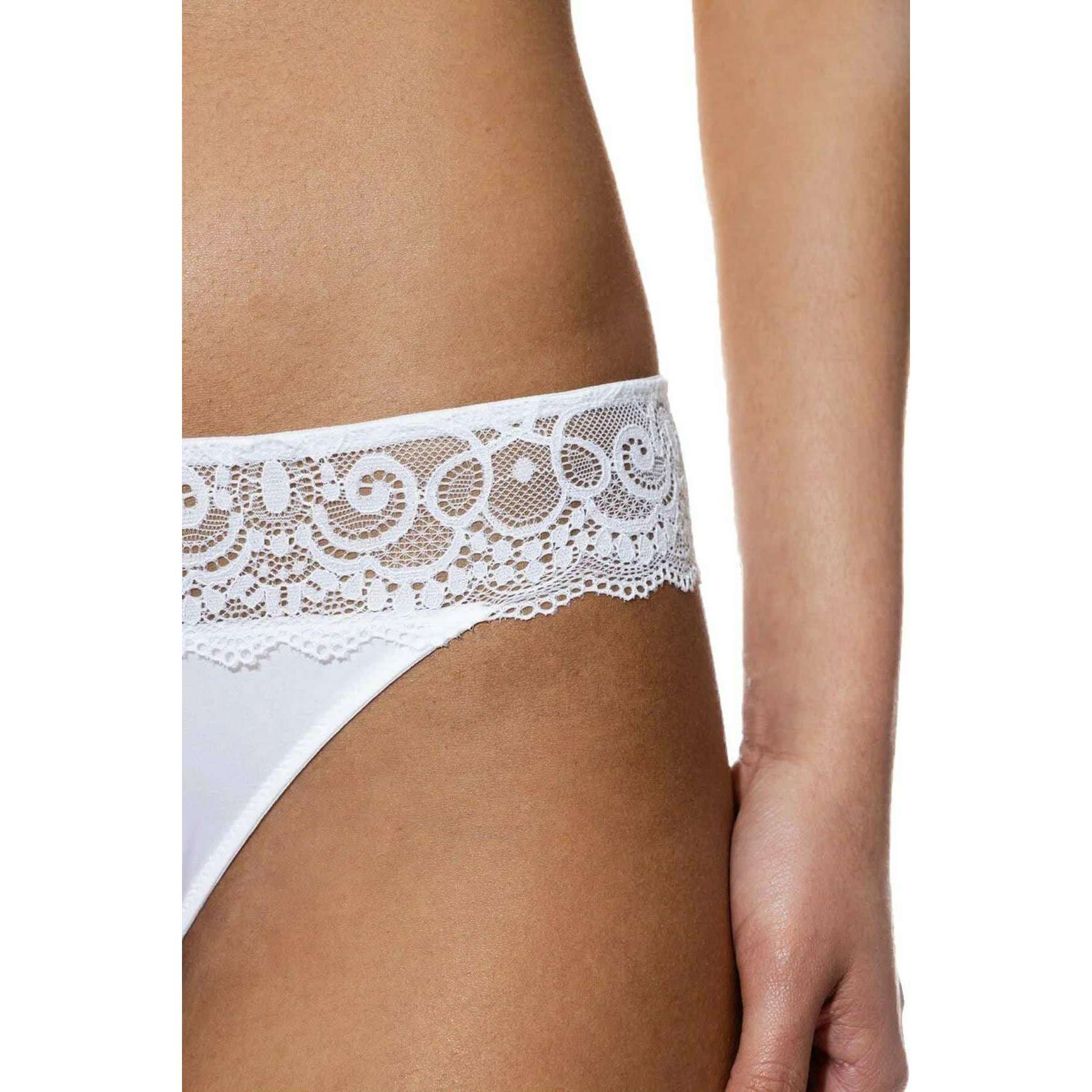 Perfect for women is this Mey white amorous mini brief, it is also made from 87% polyamid and 13% elasthan. Also the white underwear is designed in a plain pattern, It is recommended to gentle wash on 30 degrees, do not iron on a really hot setting, do not tumble dry, do not bleach to keep this underwear in good condition. All the underwear comes complete in mey packaging. The Mey Amorous Mini Brief - White Feature a deep mid rise fit with soft leg openings and a flat waistband designed to allow for optimal comfort throughout their wear. They have been decorated with delicate lace to give them an elegant and feminine touch, perfect to ensure sexy confidence. Add these to your collection and you will be reaching for them every morning.