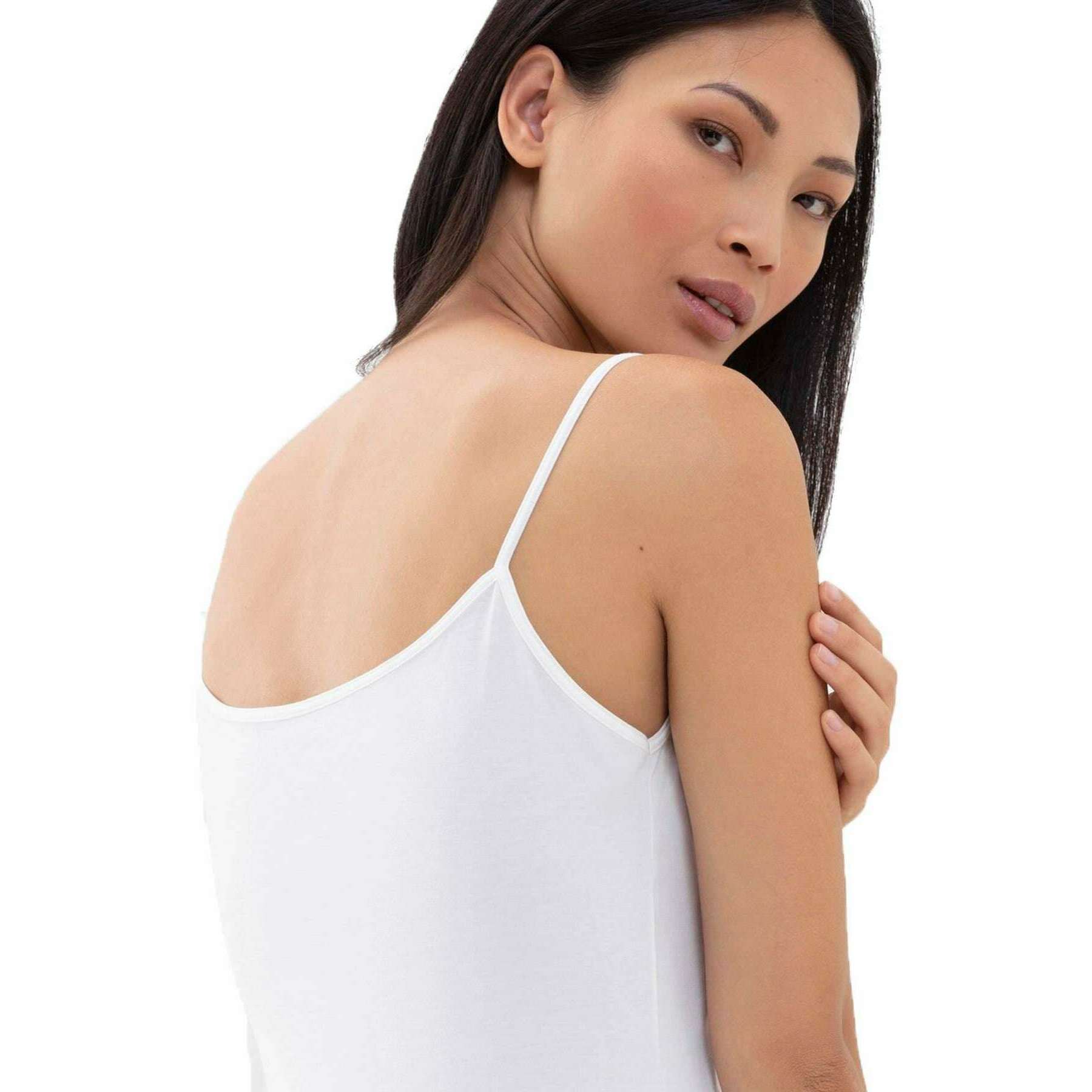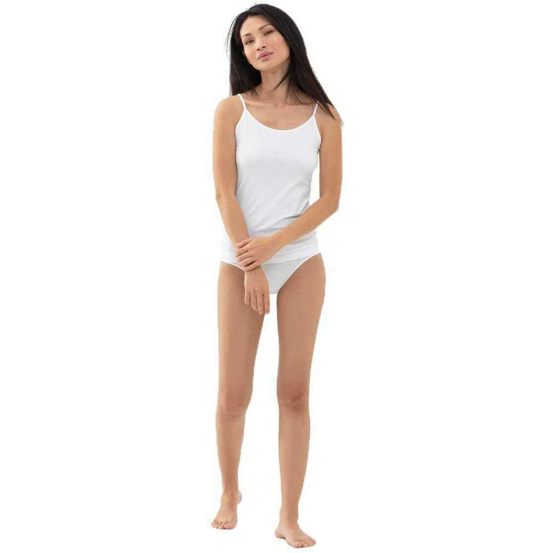 Brought to you by the brand Mey, this white women's cotton pure spaghetti vest top is made from 94% cotton and 6% elastane. Also the white vest is designed in a plain pattern, It is recommended to machine wash on a 60 degree normal cycle, do not bleach to keep this vest in good condition. All the vests come complete in mey packaging. The Mey Cotton Pure Spaghetti Vest Top - White is the perfect choice for wearing with pjs, loungewear or under a jumper for an extra layer. The slim fit offers a cosy layer, and the spaghetti straps and low neckline make it a great option if wearing with something more delicate. It features natural comfort thanks to its high elasticity, making it like a second skin.