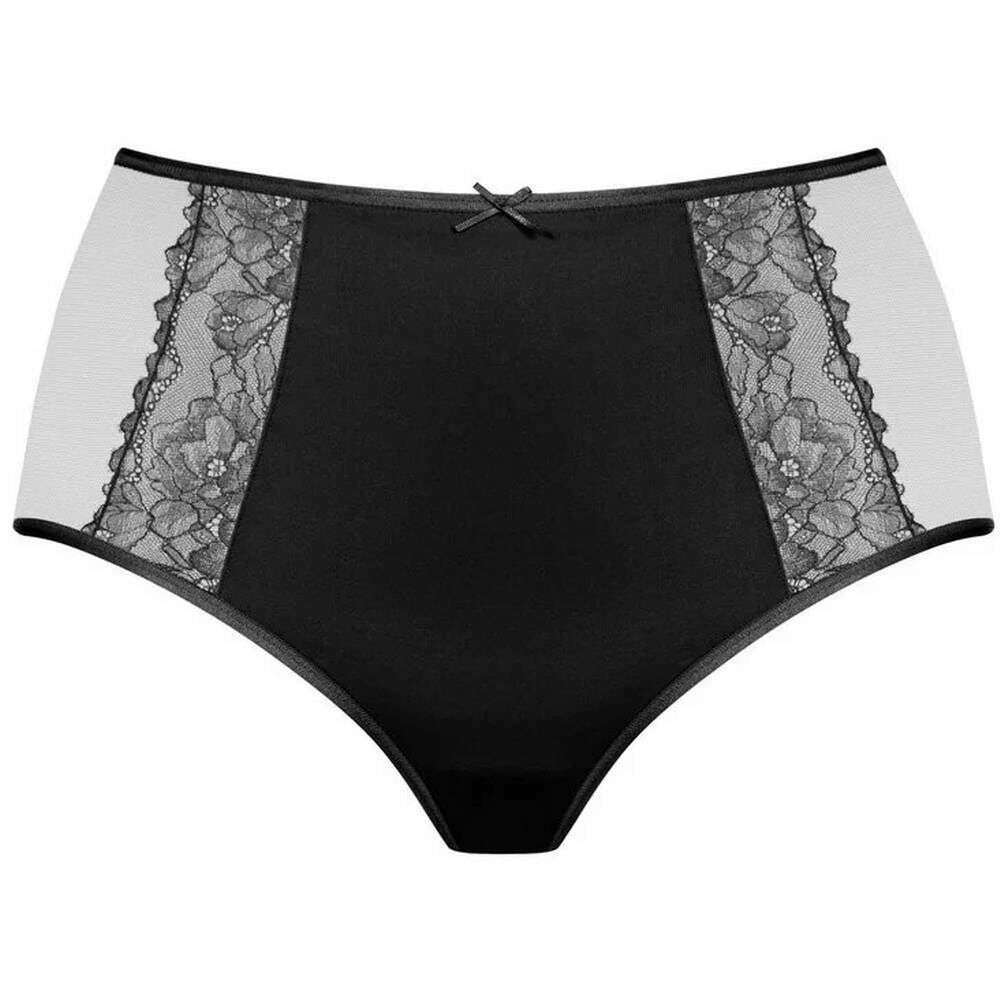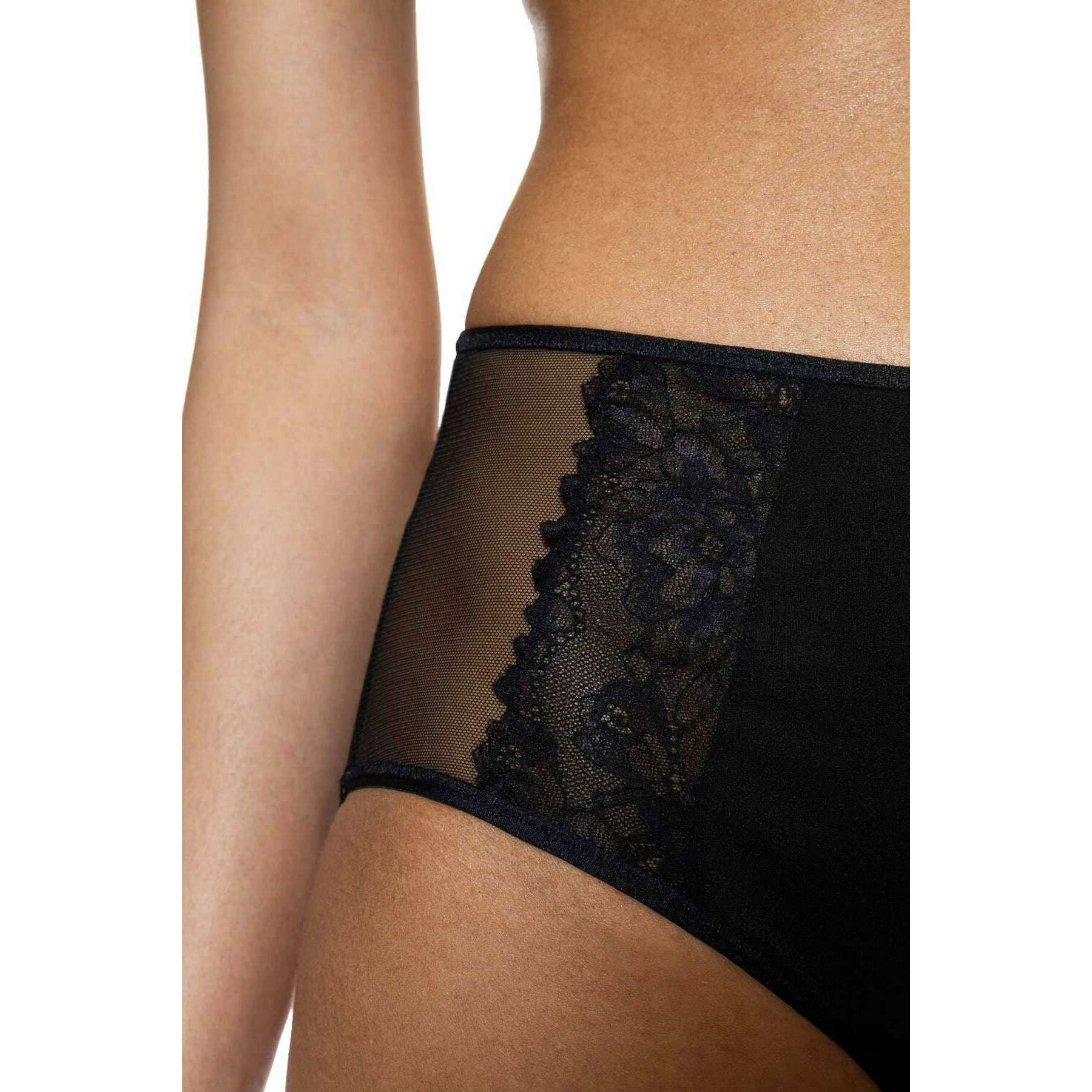 Using black 87% polyamide and 13% elastane, this fabulous waist pants by Mey is perfect for women and a must have. Also the black underwear is designed in a plain pattern, It is recommended to machine wash at 30 degrees to keep this underwear in good condition. All the underwear comes complete with mey packaging. The Mey Fabulous Waist Pants - Black are a stunning pair that offers comfort and a gorgeous design. This pair has a high-waisted fit, a cotton insert on the gusset, soft leg openings and a flat waistband which all contribute to giving optimal comfort for an everyday wear. The tulle inserts offer gentle support giving a shaping fit, whilst the lace front gives an elegant sexy flair.