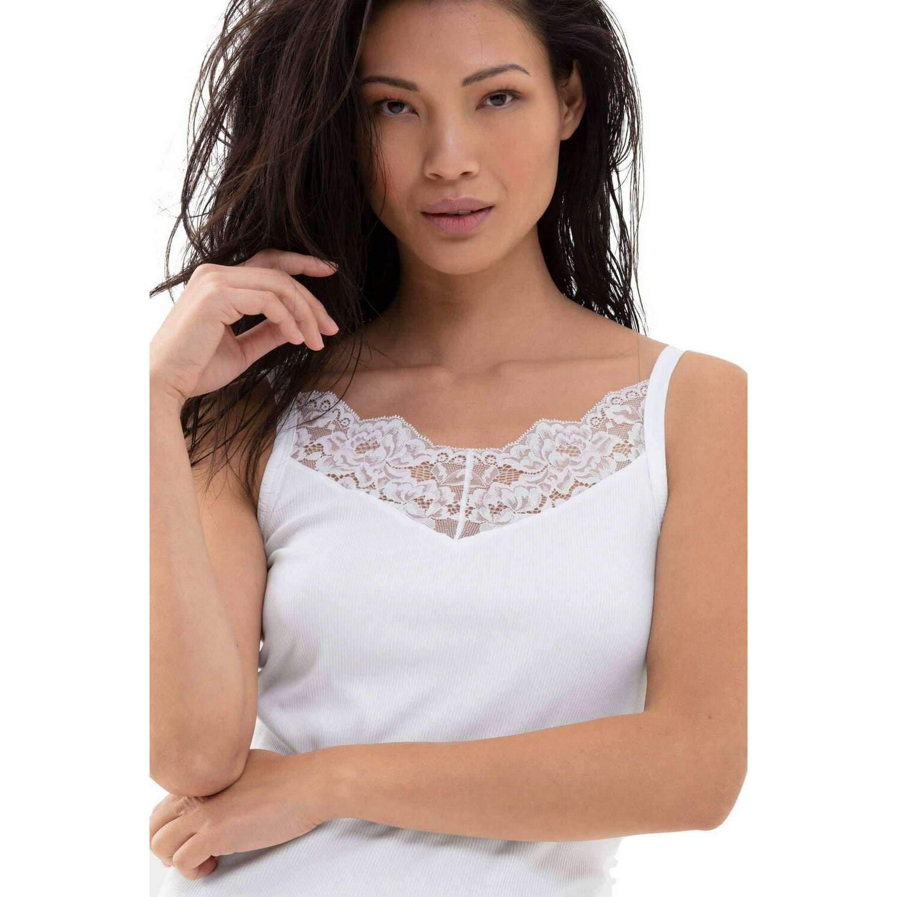 This women's organic cotton lace spaghetti top has been made from 94% cotton and 6% elastane, featured in a white colour and is from the brand Mey. Also the white vest is designed in a plain pattern, It is recommended to machine wash at 60 degrees to keep this vest in good condition. All the vests come complete with mey packaging. The Mey Organic Cotton Lace Spaghetti Top - White is designed with a flattering low V?neckline and delicate spaghetti straps for an effortlessly feminine look. Made from organic cotton, it offers soft, breathable wear that feels gentle on the skin. Perfect for layering or wearing on its own, it delivers simple, natural comfort all day long.