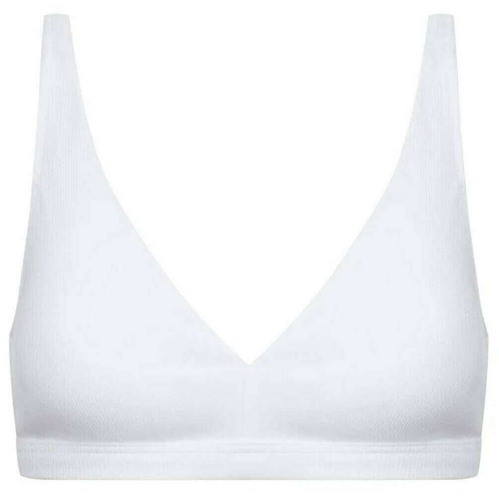 This women's organic cotton triangle bra by the brand Mey is made from 89% cotton and 11% elastane and is showcased in white. Also the white underwear is designed in a plain pattern, It is recommended to machine wash at 40 degrees to keep this underwear in good condition. All the underwear comes complete with mey packaging. The Mey Organic Cotton Triangle Bra - White ensures you enjoy natural comfort with this wire?free bra featuring removable pads, a secure rubber band, and a three?way adjustable hook?and?eye closure. Wide, adjustable straps provide extra support, making it perfect for everyday wear. Soft, simple, and effortlessly comfortable.