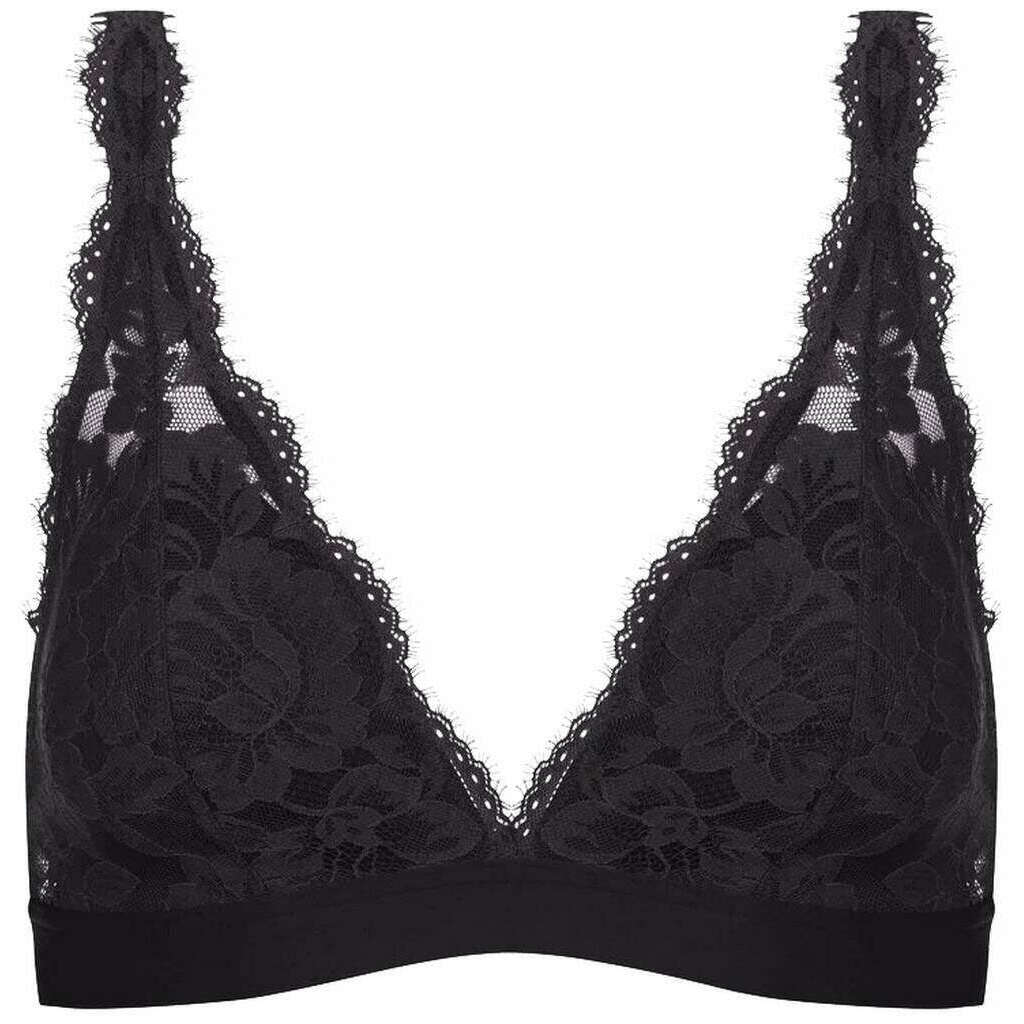 This women's poetry vogue triangle bra by the brand Mey is made from 87% polyamide and 13% elastane and is showcased in black. Also the black underwear is designed in a plain pattern, It is recommended to machine wash at 30 degrees with delicates to keep this underwear in good condition. All the underwear comes complete in mey packaging. The Mey Poetry Vogue Triangle Bra - Black is the perfect choice if you are wanting comfortable and elegant. The padding and underwire supports and the cups feature 4-way stretch and no seam. The elasticated under band ensure a flexible fit and the wide straps help keep everything in place. This beautiful bra is adorned with gorgeous lace detailing which has an eyelash design around the edges for subtle style. It is secured with a hook and eyelet fastener and offers 3-way adjustability.