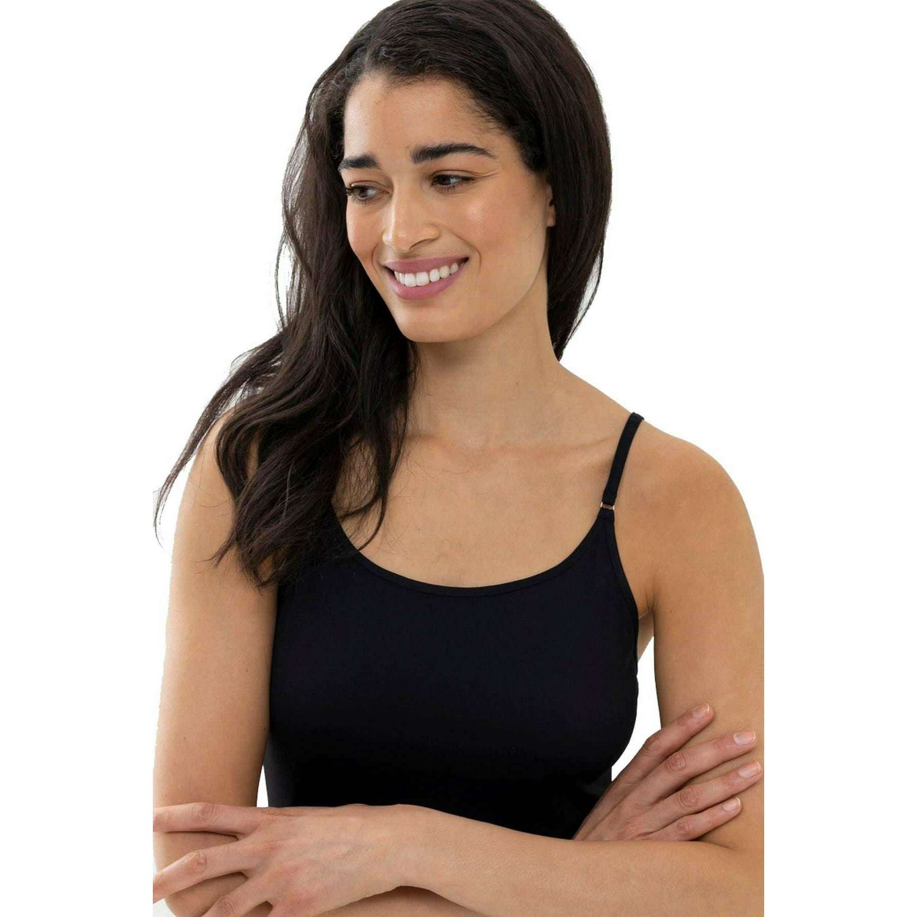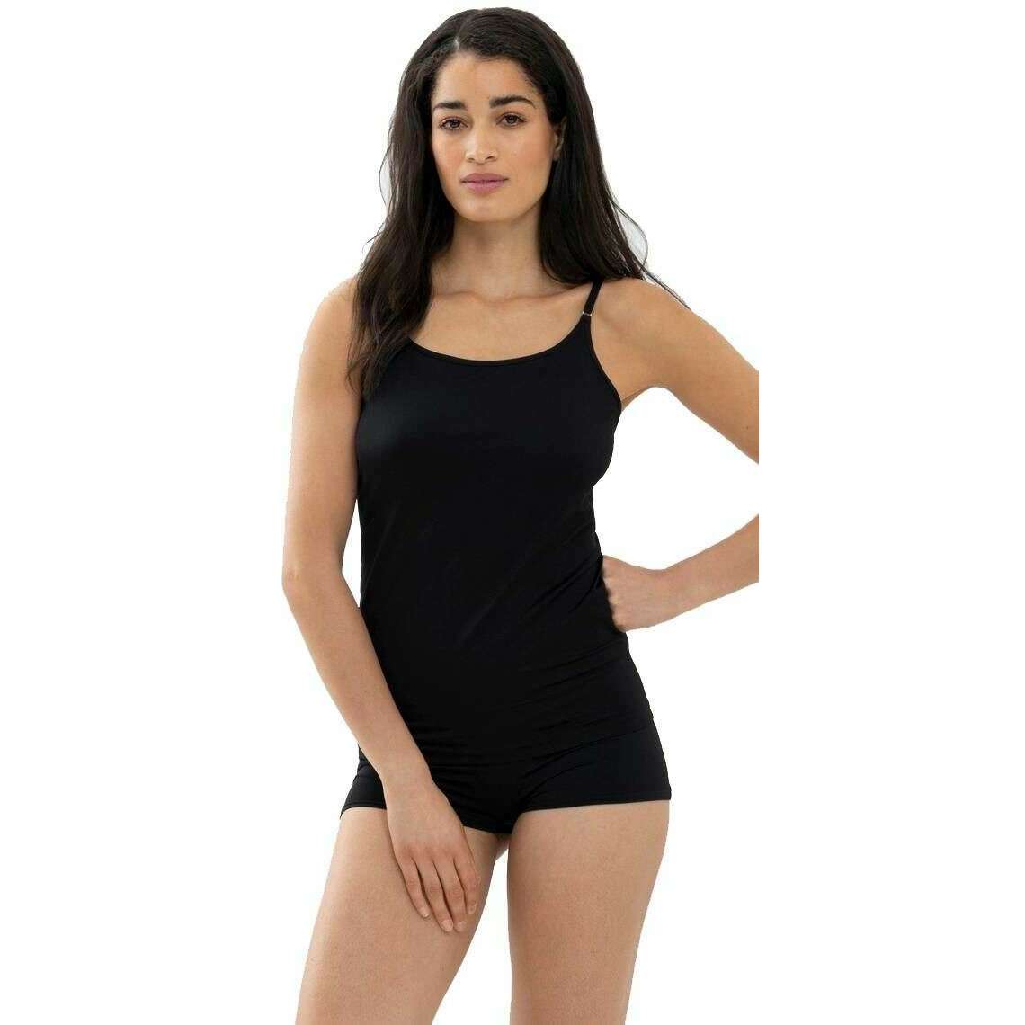 This women's soft shape spaghetti top by the brand Mey is made from 90% polyamide and 10% elastane and is showcased in black. Also the black vest is designed in a plain pattern, It is recommended to machine wash at 30 degrees on delicate, not suitable for tumble drying to keep this vest in good condition. All the vests come complete in mey packaging. The Mey Soft Shape Spaghetti Top - Black ensures upmost comfort with its smooth and soft material . Featuring a slim fit, a low round neckline, adjustable spaghetti straps and seamless sides. This top is an absolute essential in any woman's collection with its high-quality and durable material that gives an enjoyable wear all day long.