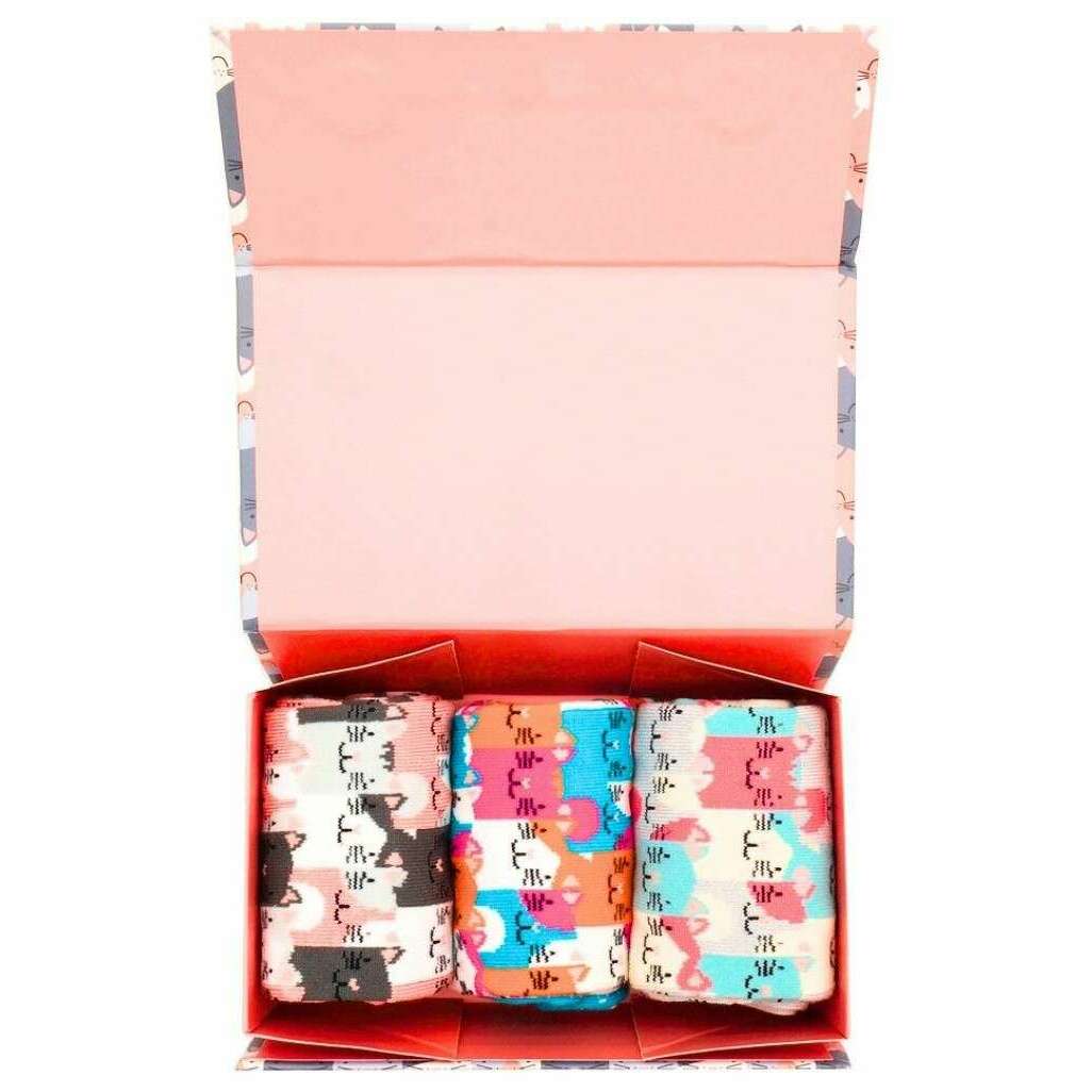 Miss Sparrow London 3 Pack Happy Cats Sock Box - Pink/Blue