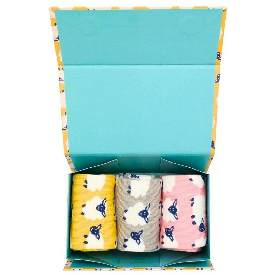 Miss Sparrow London 3 Pack Happy Sheep Sock Box - Yellow/Grey/Pink