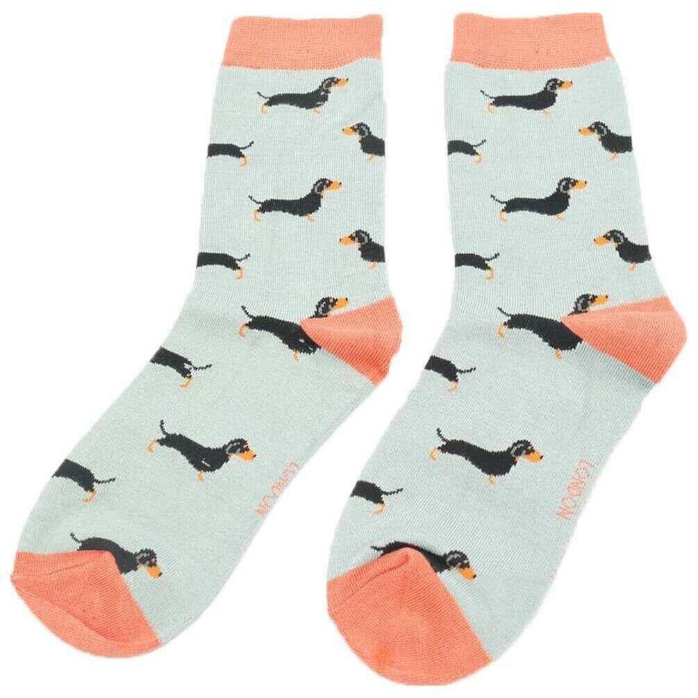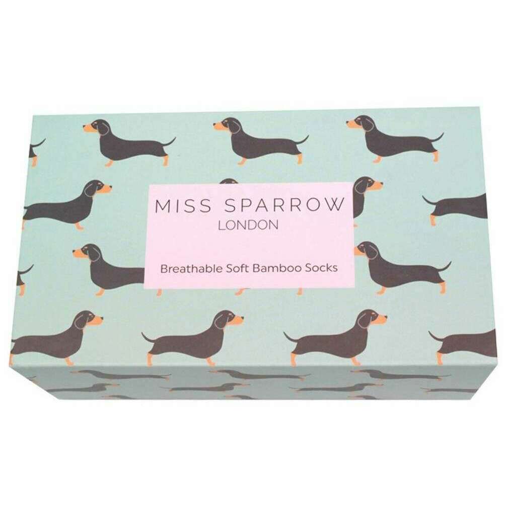 These well made women's 3 pack little sausage dogs sock box from Miss Sparrow London come in a blue/green/yellow colour and are manufactured from 51% bamboo, 19% cotton, 18% polyester, 10% polyamide and 2% elastane. Also the blue/green/yellow socks are designed in a unique pattern, It is recommended to machine was at 40 degrees and do not tumble dry to keep these socks in good condition. 3 pack socks are value for money ensuring they are a good buy, All the socks come complete with miss sparrow london presentation box. The Miss Sparrow London 3 Pack Little Sausage Dogs Sock Box - Blue/Green/Yellow are fun and playful bursting with colour. These extremely comfortable socks have been crafted from a Bamboo blend that ensures a breathable yet warm and cosy wear which is also antibacterial and hypoallergenic. This gorgeously designed set will make a great gift to yourself or a loved one, that will without a doubt bring a smile to all faces.
