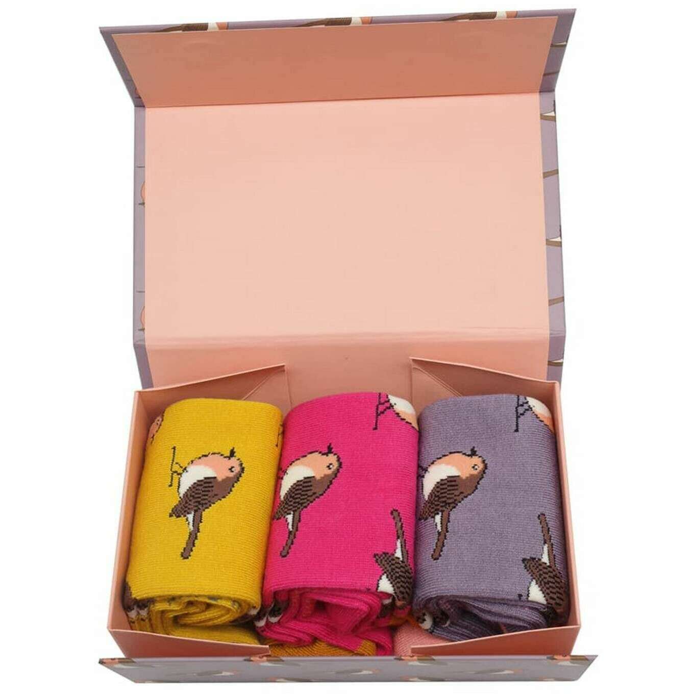 Miss Sparrow London 3 Pack Robins Sock Box - Pink/Yellow/Purple