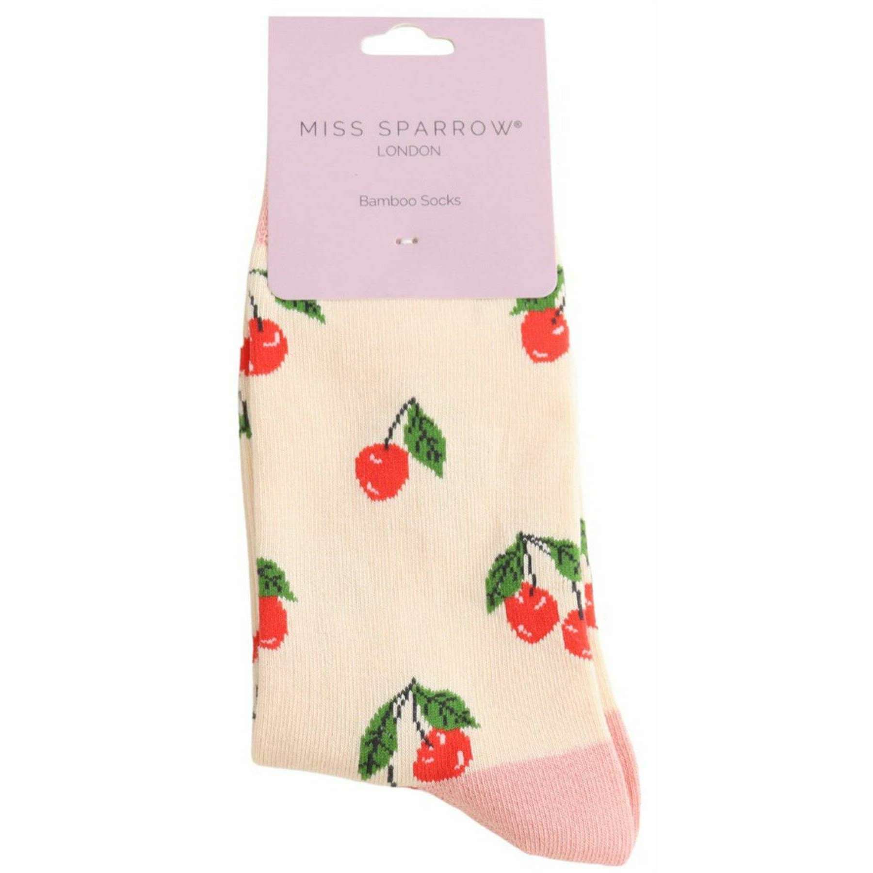 Miss Sparrow London Cherries Bamboo Socks - Cream