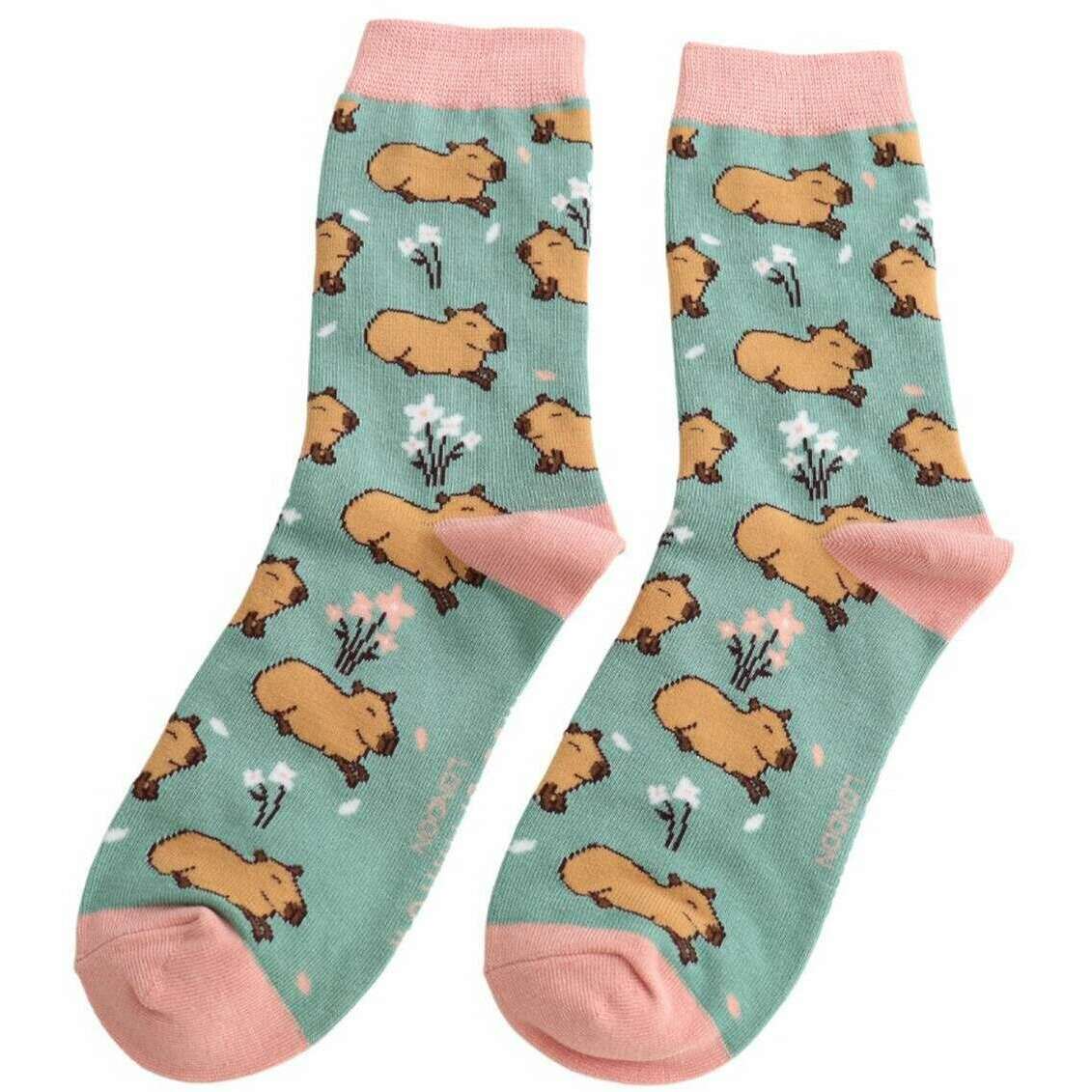 Miss Sparrow London Cute Capybara Bamboo Socks - Green