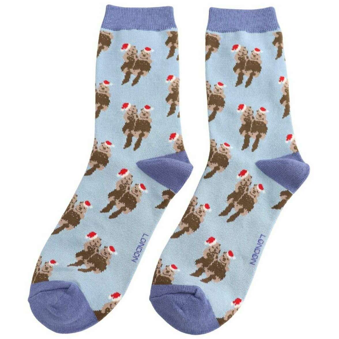 Miss Sparrow London Festive Otters Bamboo Socks - Powder Blue