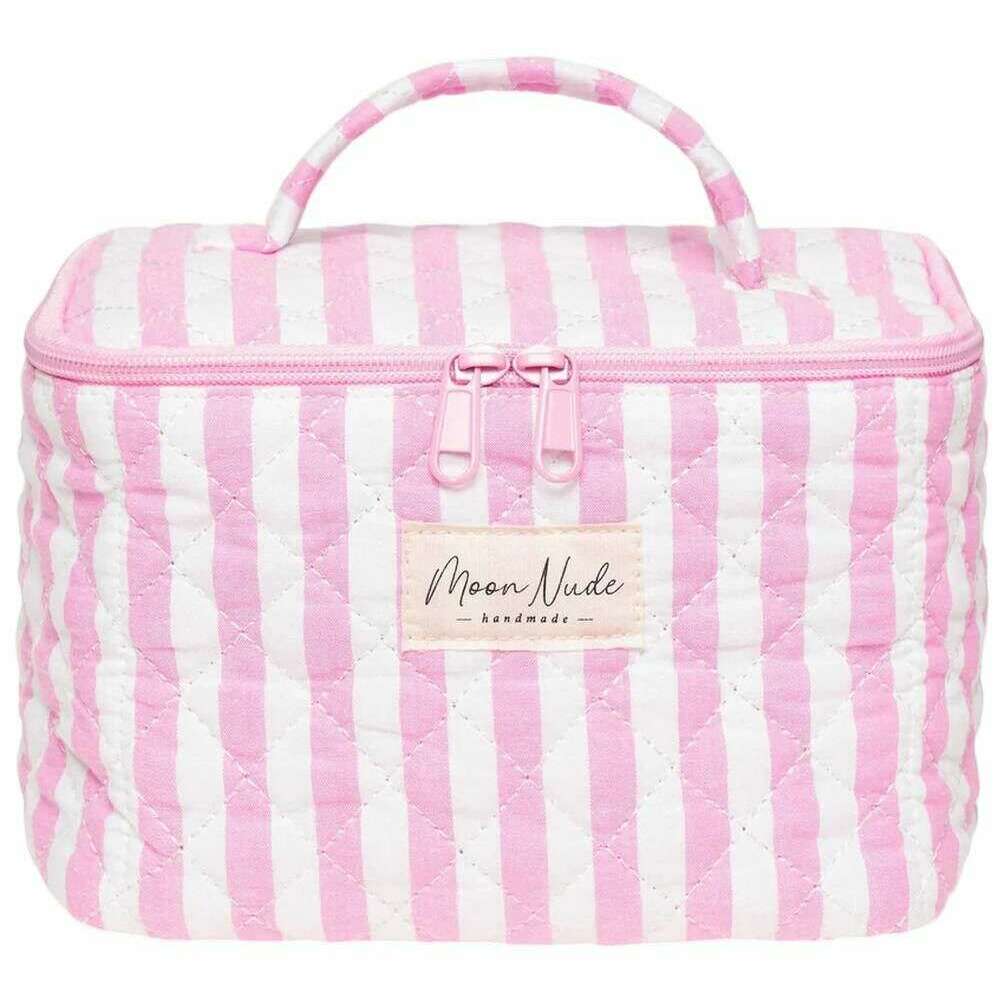 Using pink 100% cotton, this barbie vanity bag by Moon Nude is perfect for women and a must have. It measures 16cm(height) x 22cm(width) x 14cm(depth). It is recommended to wash by hand in cold water with a mild detergent, or maching wash inside out on a delicate cycle. to keep this bag in good condition. All the bags come complete with moon nude packaging. The Moon Nude Barbie Vanity Bag - Pink/White is an absolute necessity for travelling or everyday use. This vanity bag is guaranteed to keep all your makeup or skin care in one place, whilst also being stylish and fashionable with its handmade quilted design.