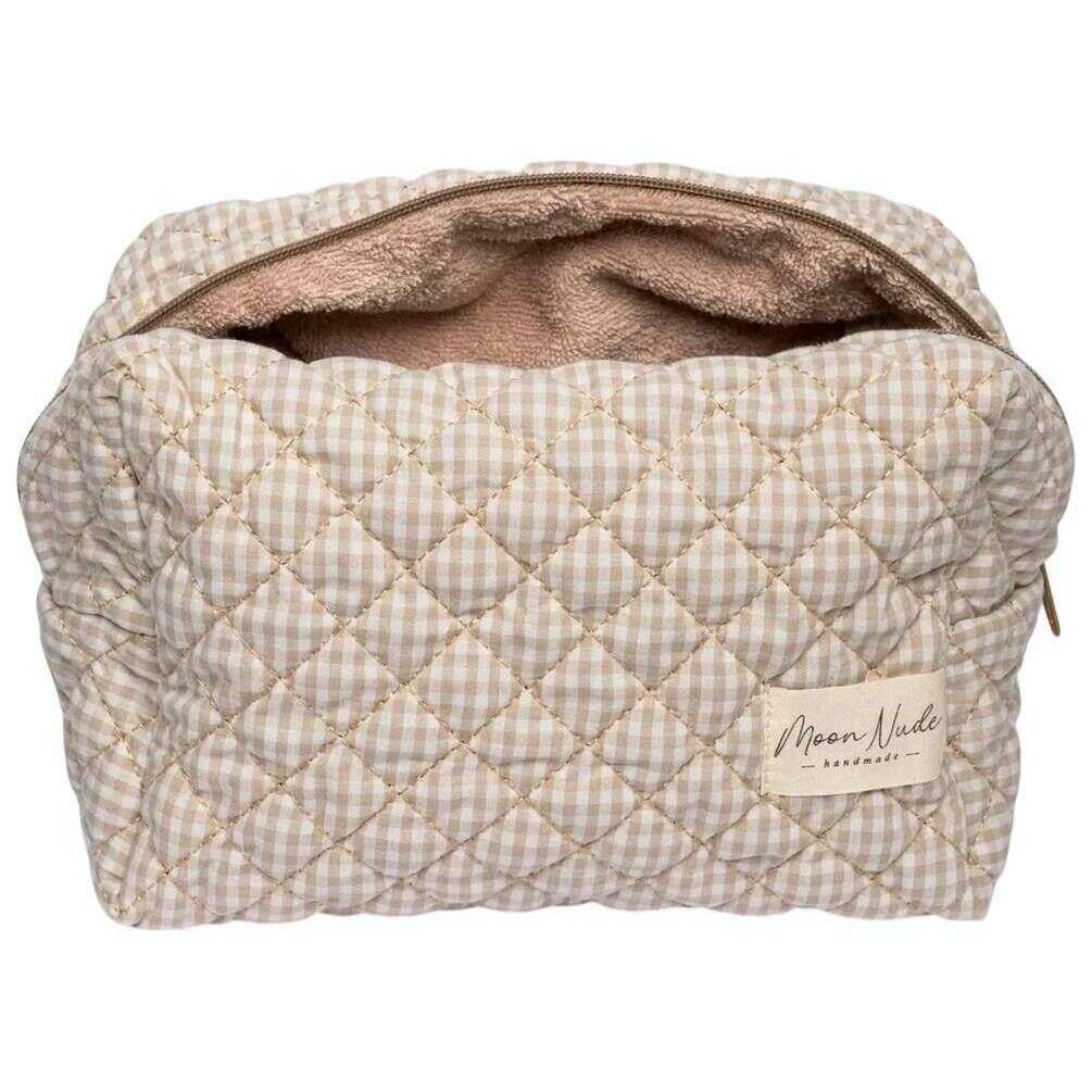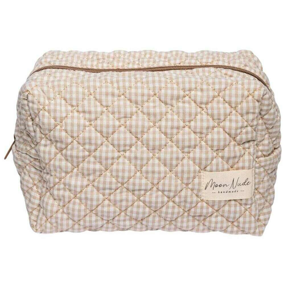 Perfect for women is this Moon Nude cream/beige large makeup bag, it is also made from 100% cotton. It measures 15cm(height) x 25cm(width) x 15cm(depth). It is recommended to wash by hand in cold water with a mild detergent, or maching wash inside out on a delicate cycle. to keep this bag in good condition. All the bags come complete with moon nude packaging. The Moon Nude Large Makeup Bag - Cream/Beige is an absolute necessity for your room or everyday bag. This makeup bag is guaranteed to keep all your most used products together and safe, whilst also being stylish and chic with its handmade quilted design.