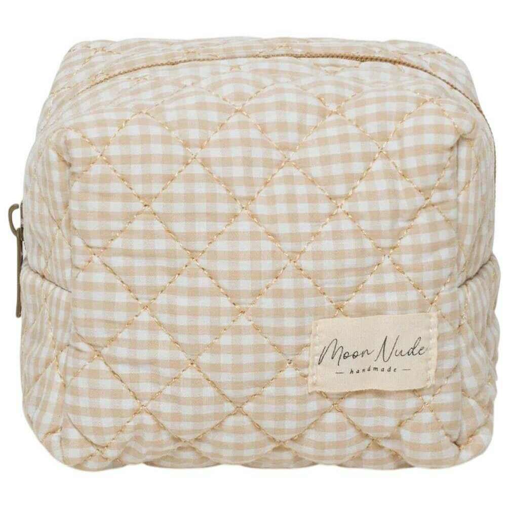 Perfect for women is this Moon Nude cream/beige mini makeup bag, it is also made from 100% cotton. It measures 13cm(height) x 15cm(width) x 11cm(depth). It is recommended to wash by hand in cold water with a mild detergent, or maching wash inside out on a delicate cycle. to keep this bag in good condition. All the bags come complete with moon nude packaging. The Moon Nude Mini Makeup Bag - Cream/Beige is an absolute necessity for your room or everyday bag. This makeup bag is guaranteed to keep all your most used products together and safe, whilst also being stylish and chic with its handmade quilted design.