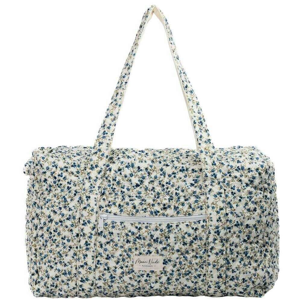 This women's spring large duffel bag has been made from 100% cotton, featured in a blue colour and is from the brand Moon Nude. It measures 30cm(height) x 50cm(width) x 28cm(depth). It is recommended to wash by hand in cold water with a mild detergent, or maching wash inside out on a delicate cycle. to keep this bag in good condition. All the bags come complete with moon nude packaging. The Moon Nude Spring Large Duffel Bag - Blue/Green features a beautiful handmade quilted design. This bag features an exterior zip pocket, a spacious interior and two large handles, perfect for weekend getaways or carrying lots of belongings.