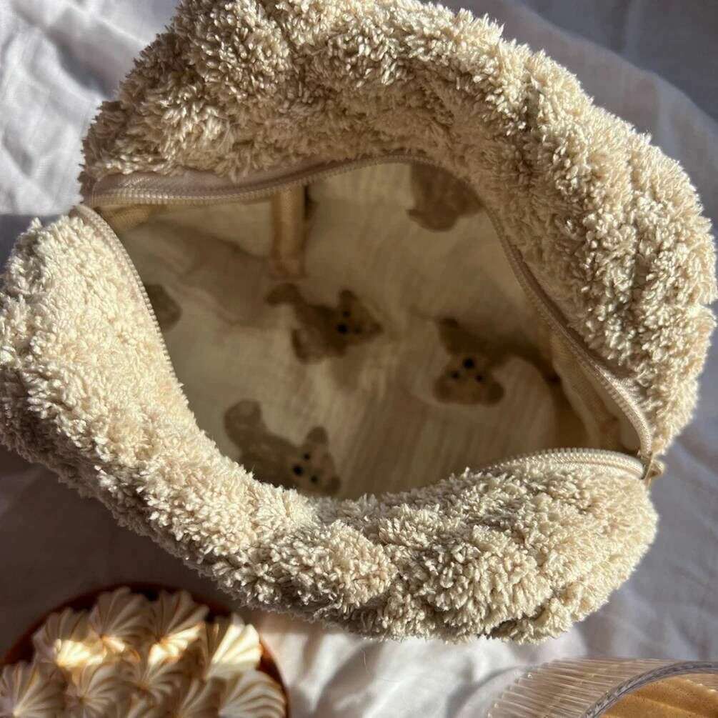 Perfect for women is this Moon Nude beige teddy mini makeup bag, it is also made from 100% cotton. It measures 13cm(height) x 15cm(width) x 11cm(depth). It is recommended to wash by hand in cold water with a mild detergent, or maching wash inside out on a delicate cycle. to keep this bag in good condition. All the bags come complete with moon nude packaging. The Moon Nude Teddy Mini Makeup Bag - Beige is an absolute necessity for your room or everyday bag. This makeup bag is guaranteed to keep all your most used products together and safe, whilst also being stylish and chic with its handmade quilted design.
