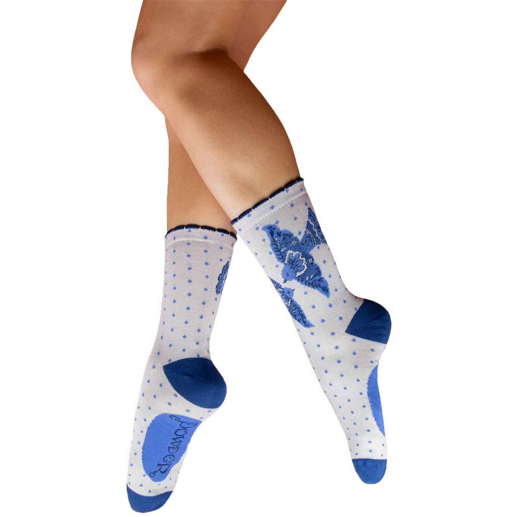 Powder Blue Birds Ankle Socks - White/Blue