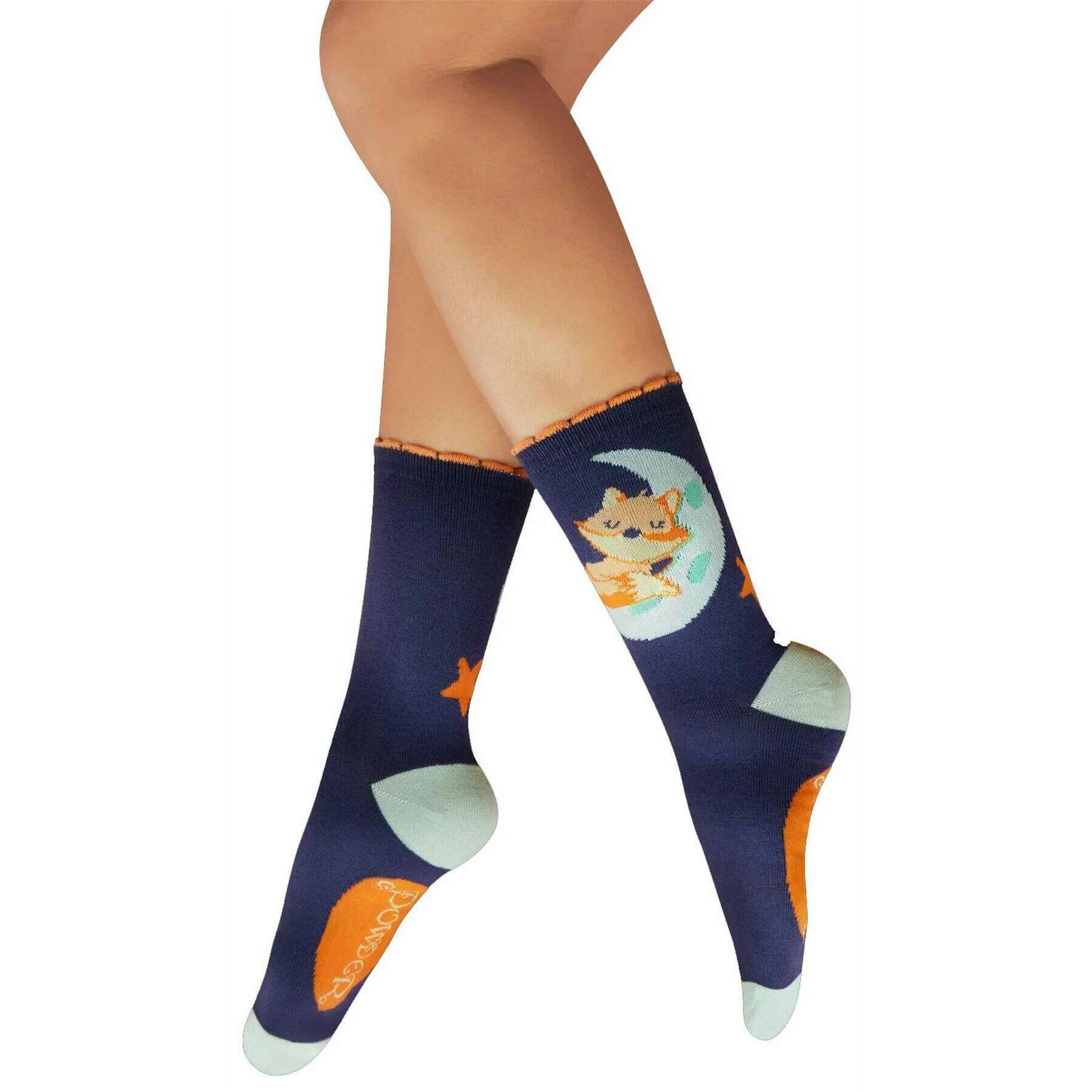 Powder Dreaming Fox Ankle Socks - Navy/Light Blue/Orange